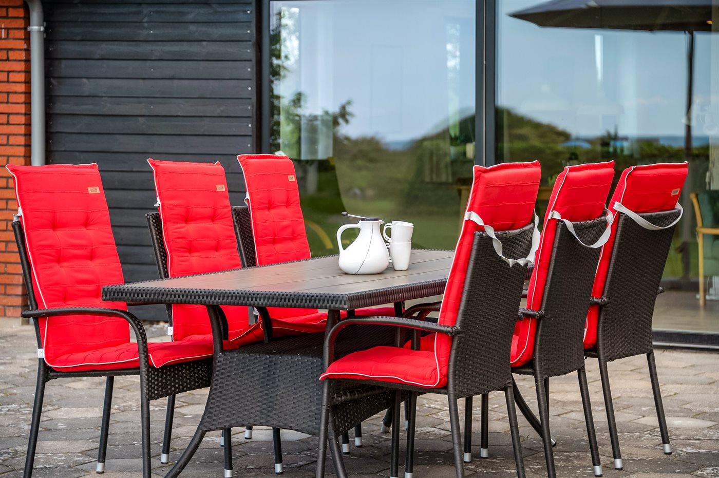 Ferieboligen er beliggende på en 1722 m² stor havegrund. Der er 100 m til havet. Nærmeste forretning er beliggende i en afstand af 5000 m. Til ferieboligen hører 70 m² terrasseareal. Gynge. 2 sandkasser. Trampolin. Fodboldmål. Parkering ved ferieboligen.