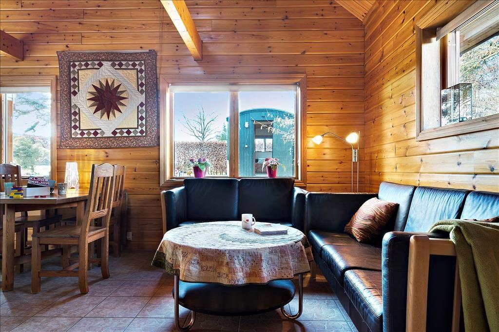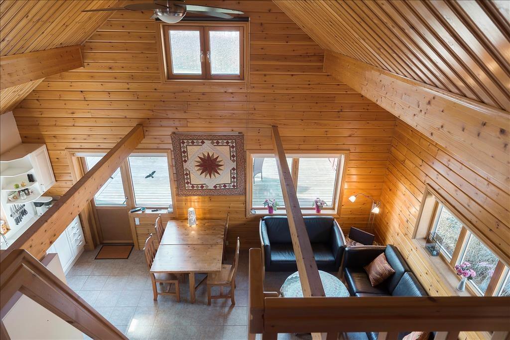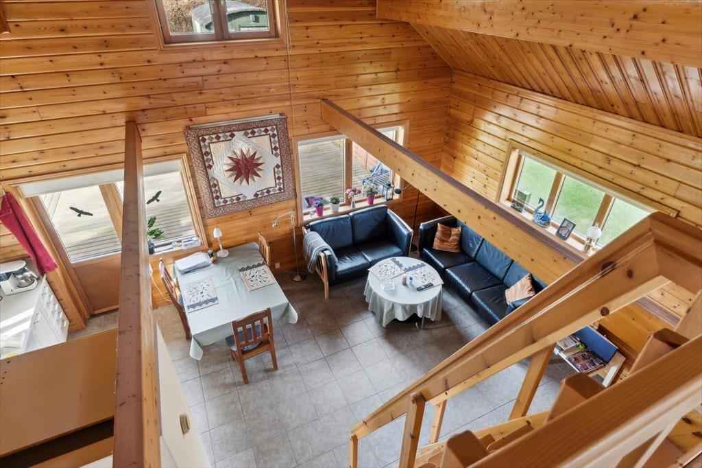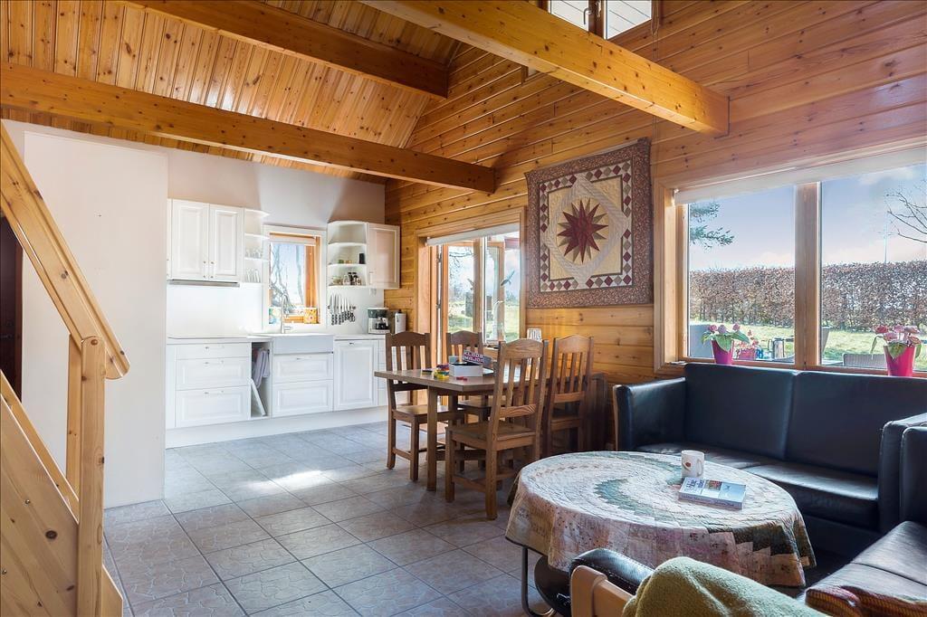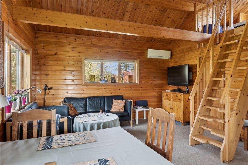 Stue med spiseplads og sofahjørne med TV. Varmepumpe med køl. Internet.
