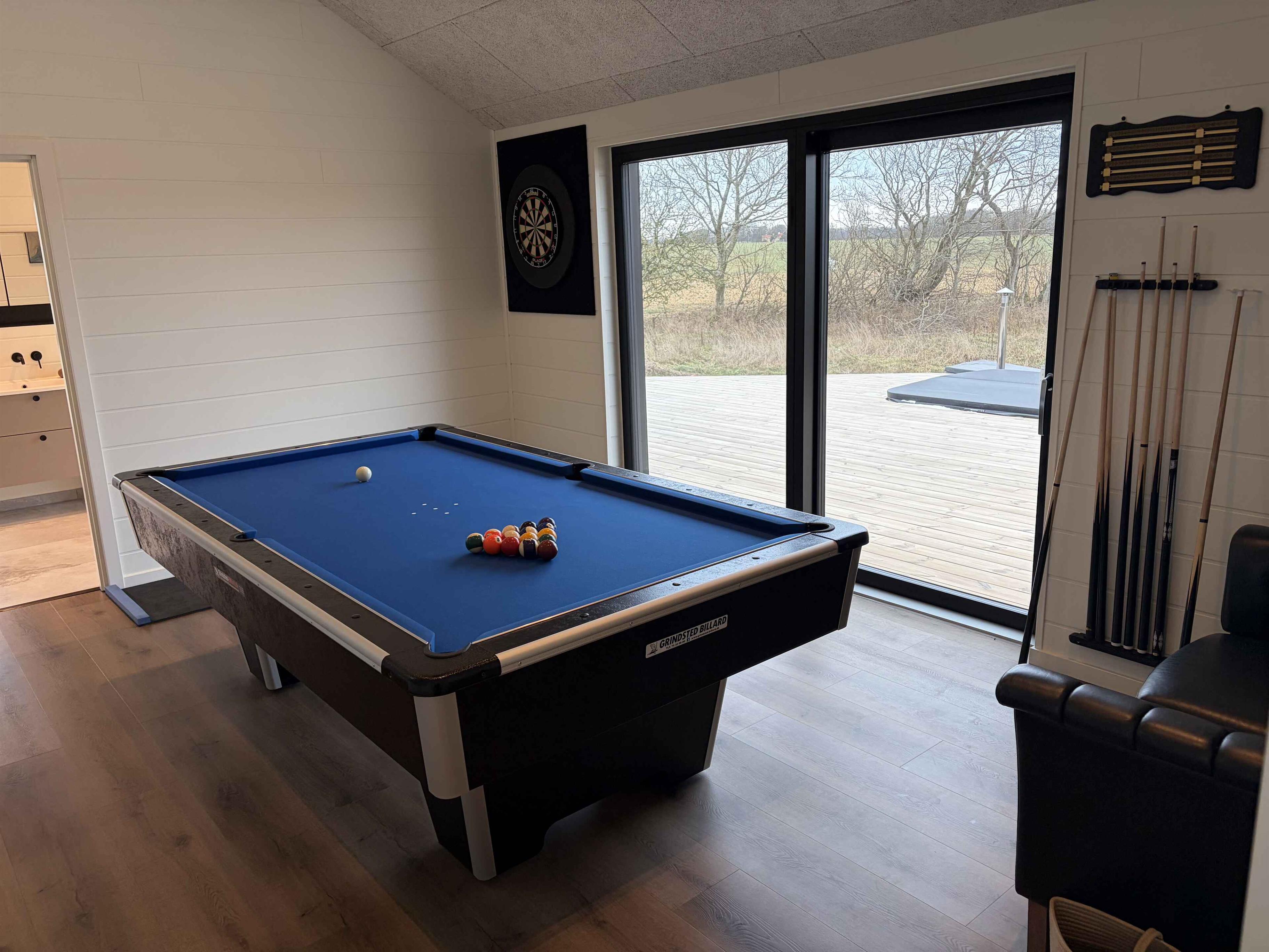 Super lækkert sommerhus opført 2025- 2026 med udsigt over marker, skov og Limfjorden, kort afstand til områdets bedste badestrand Sommerhuset har 4 værelser med dobbeltsenge, 2 badeværelser, hems, Aktivitetsrum med nyt billard, bordtennis og Dart