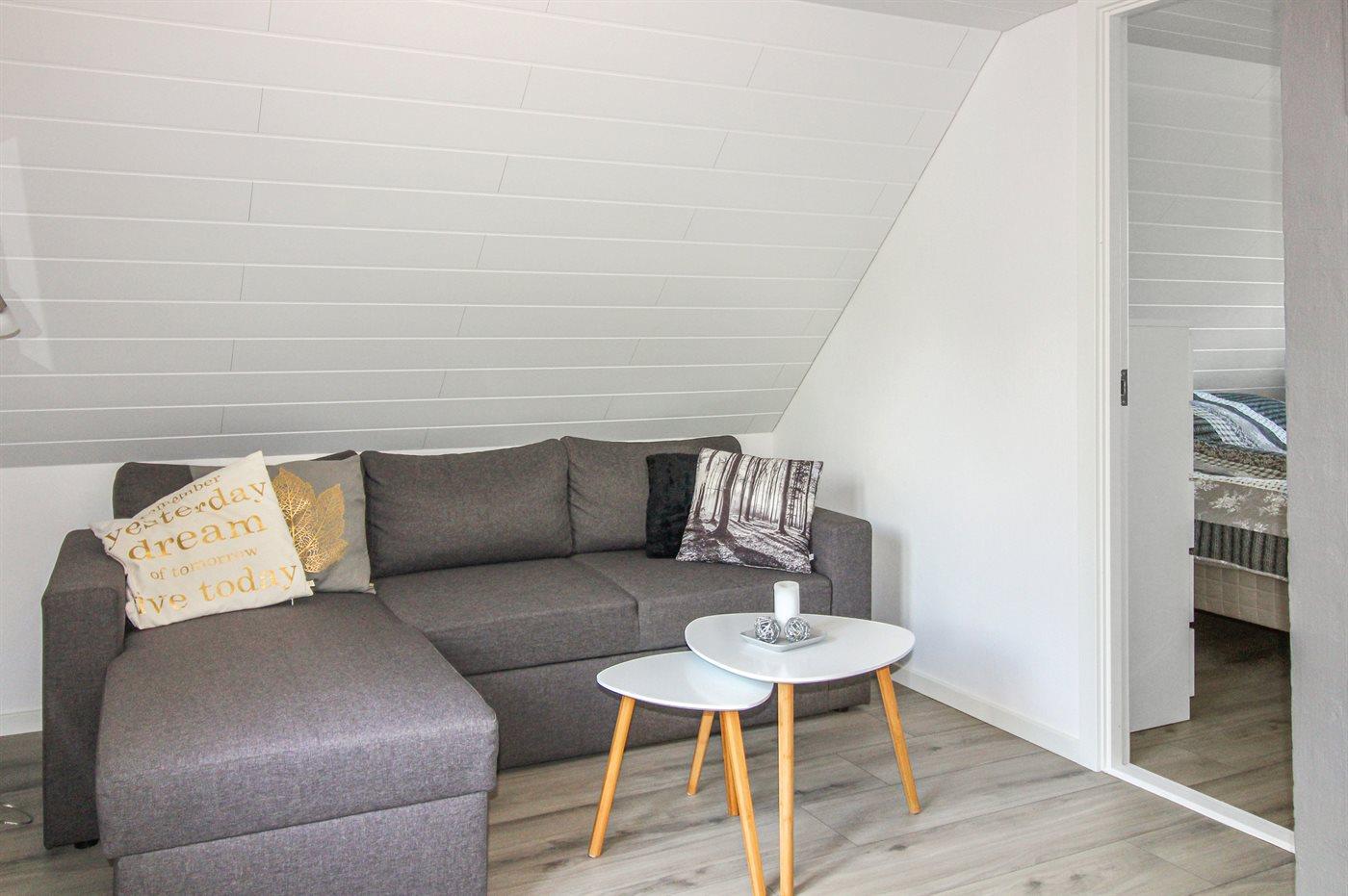 Der er i alt 2 soveværelser. Sovepladserne fordeler sig på: 4 sovepladser i dobbeltsenge. 2 sovepladser i sovesofa (dobbelt). Derudover er der 1 stk. barneseng.
