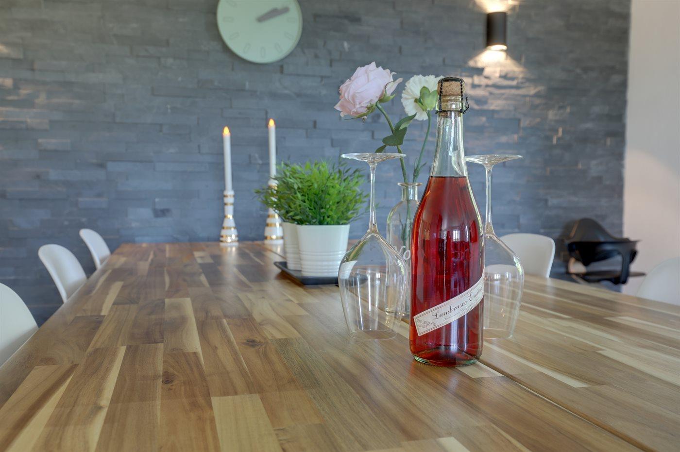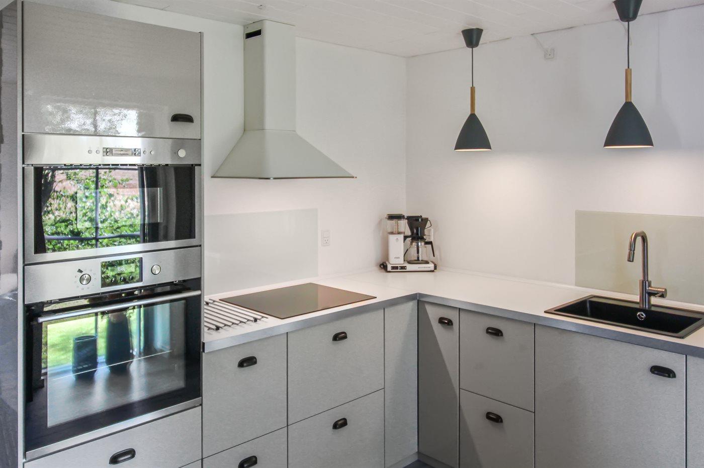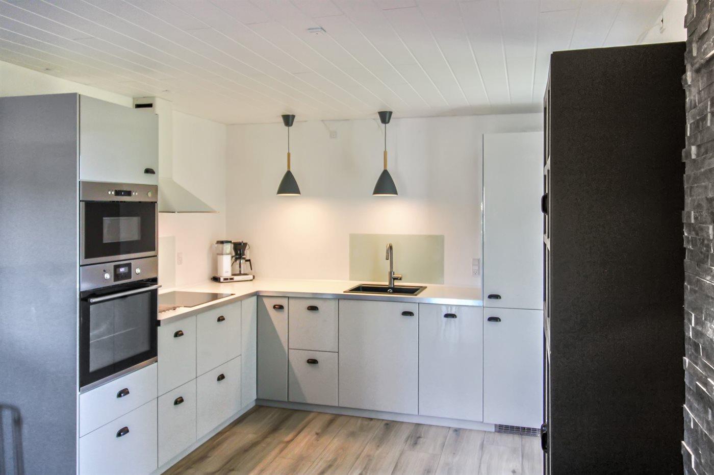 Køkkenet er udstyret med 1 køleskab. Der er 4 induktionskogeplader, varmluftovn, mikrobølgeovn samt opvaskemaskine.