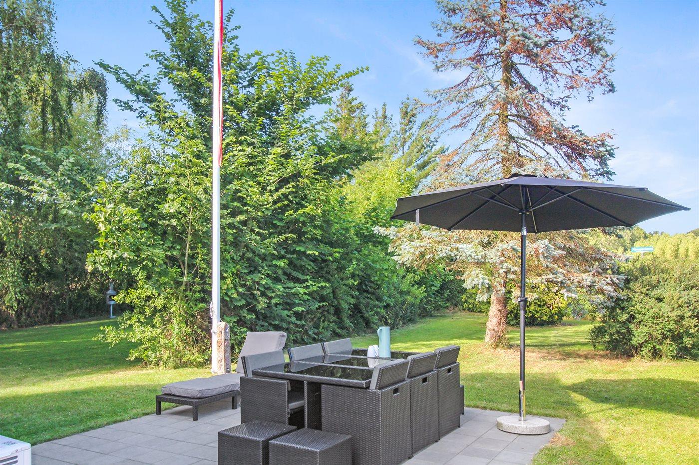 Ferieboligen er beliggende på en 1169 m² stor naturgrund. Grunden er indhegnet. Der er 3000 m til havet. Nærmeste forretning er beliggende i en afstand af 4000 m. Der er en golfbane i en afstand af 4000 m. Gynge. Sandkasse. Trampolin. Bålsted. Parkering ved ferieboligen.