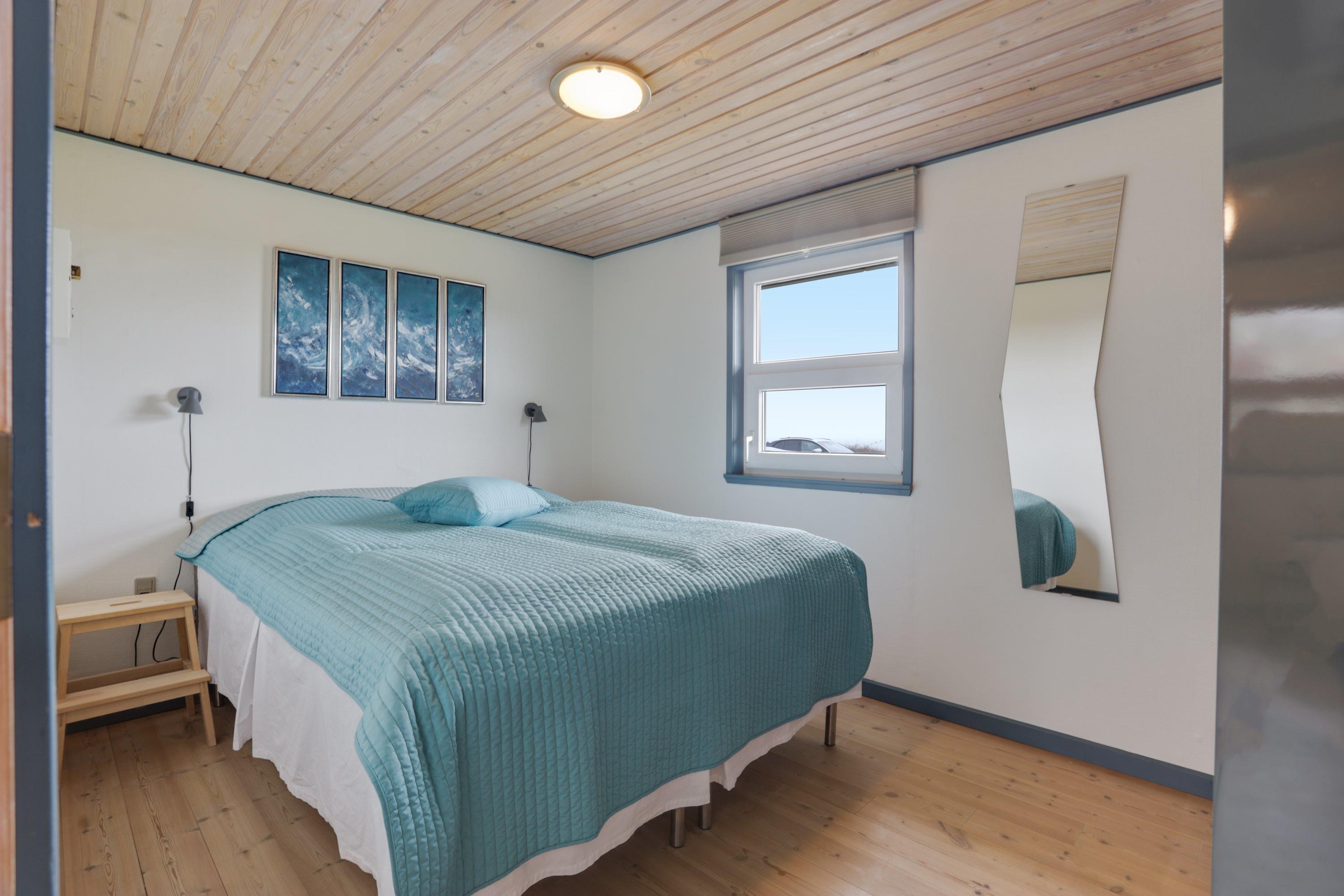 Opholdsstuen giver adgang til husets to soveværelser. Det første værelse byder på en stor dobbeltseng og en fantastisk havudsigt, som gør det til en perfekt oase for afslapning. Det andet værelse har køjesenge, der er ideelle for børn eller ekstra gæster. Fra stuen er der også adgang til en mindre hems med to sovepladser, der kan bruges som et hyggeligt opholdssted. Badeværelset er pænt indrettet og har en praktisk bruseniche.