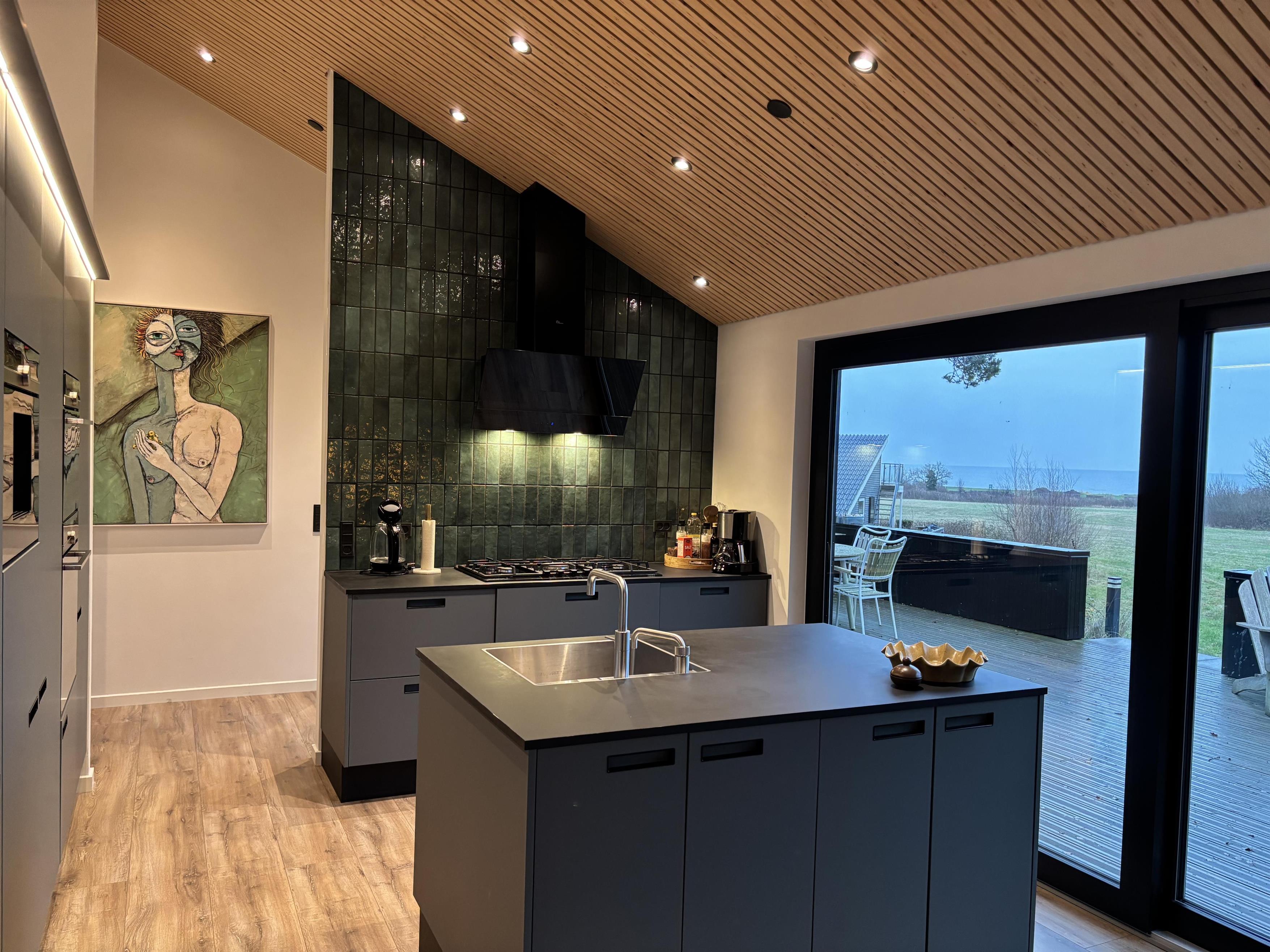 Indenfor mødes I af et lyst og stilfuldt miljø med kvalitetsmaterialer og sans for detaljer. Huset byder på tre indbydende soveværelser, to elegante badeværelser og et veludstyret køkken, hvor den store vinduessektion giver jer havudsigt – selv madlavningen bliver en fornøjelse her. Den åbne spise- og opholdsstue har direkte udgang til terrassen.