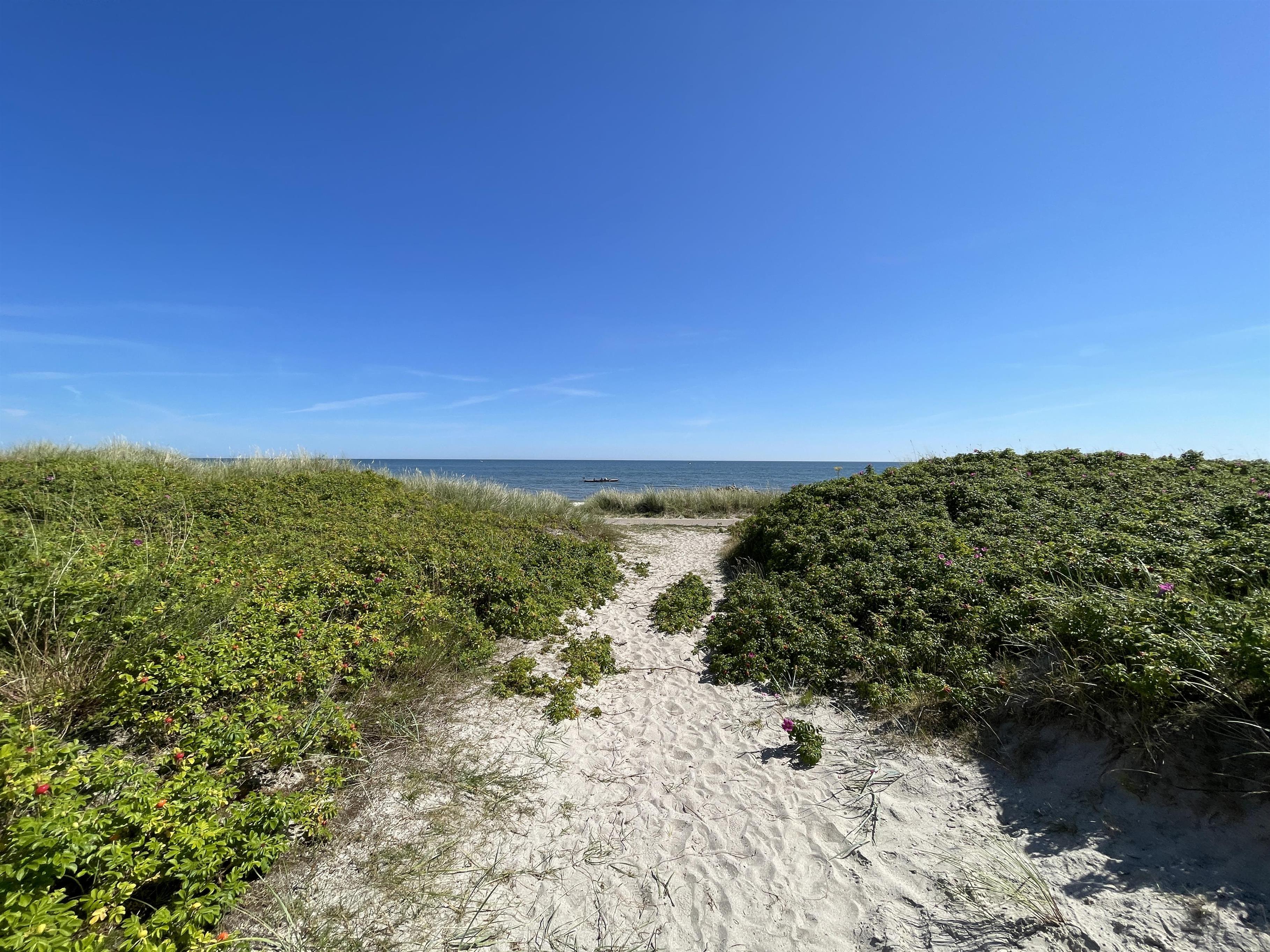 Ferieboligen har en helt unik beliggenhed med kun 90 meter til den smukkeste børnevenlige badestrand, og med blot 5 minutteres gang, kan du vælge at gå til Sæby charmerende midtby med butiksliv, henover det rislende åløb, eller du kan gå den anden vej til havnen, hvor du finder ishuse, butikker og mange lystsejlere om sommeren. Vi anbefaler også en tur ved åløbet i Sæbygårdskov, hvor du kan nyde, det rislende vand og den store smukke bøgeskov. Her er kun 10 minutters gang gennem smukt ældre boligområde.