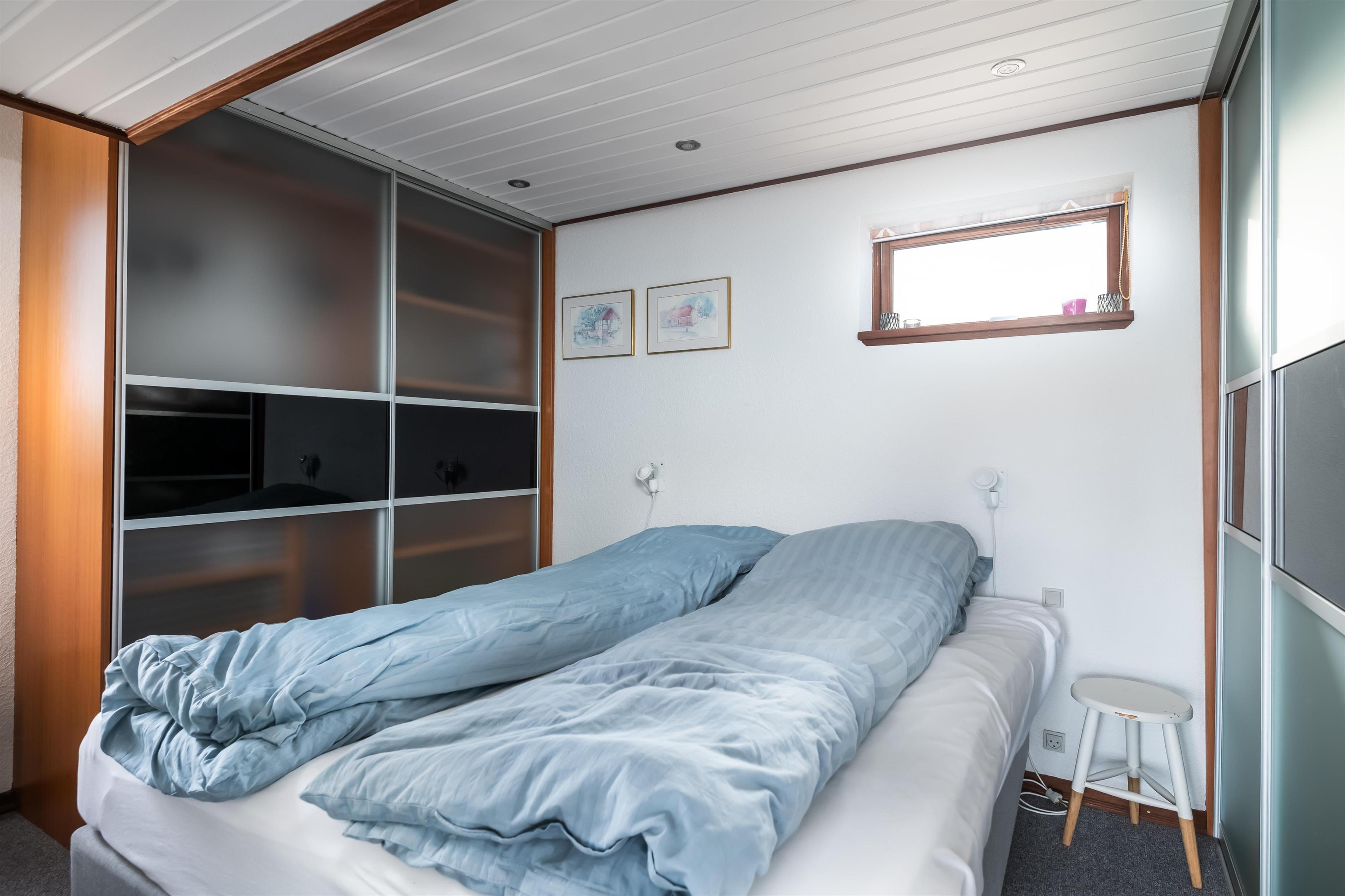 Dette intime Huset er indrettet med stue, køkken, badeværelse og et soveværelse med dobbeltseng, i underetagen. Fra stuen går der er stejl trappe op til det sidste soverum/hems, med tre sovepladser, bestående af tre boksmadrasser på gulvet.