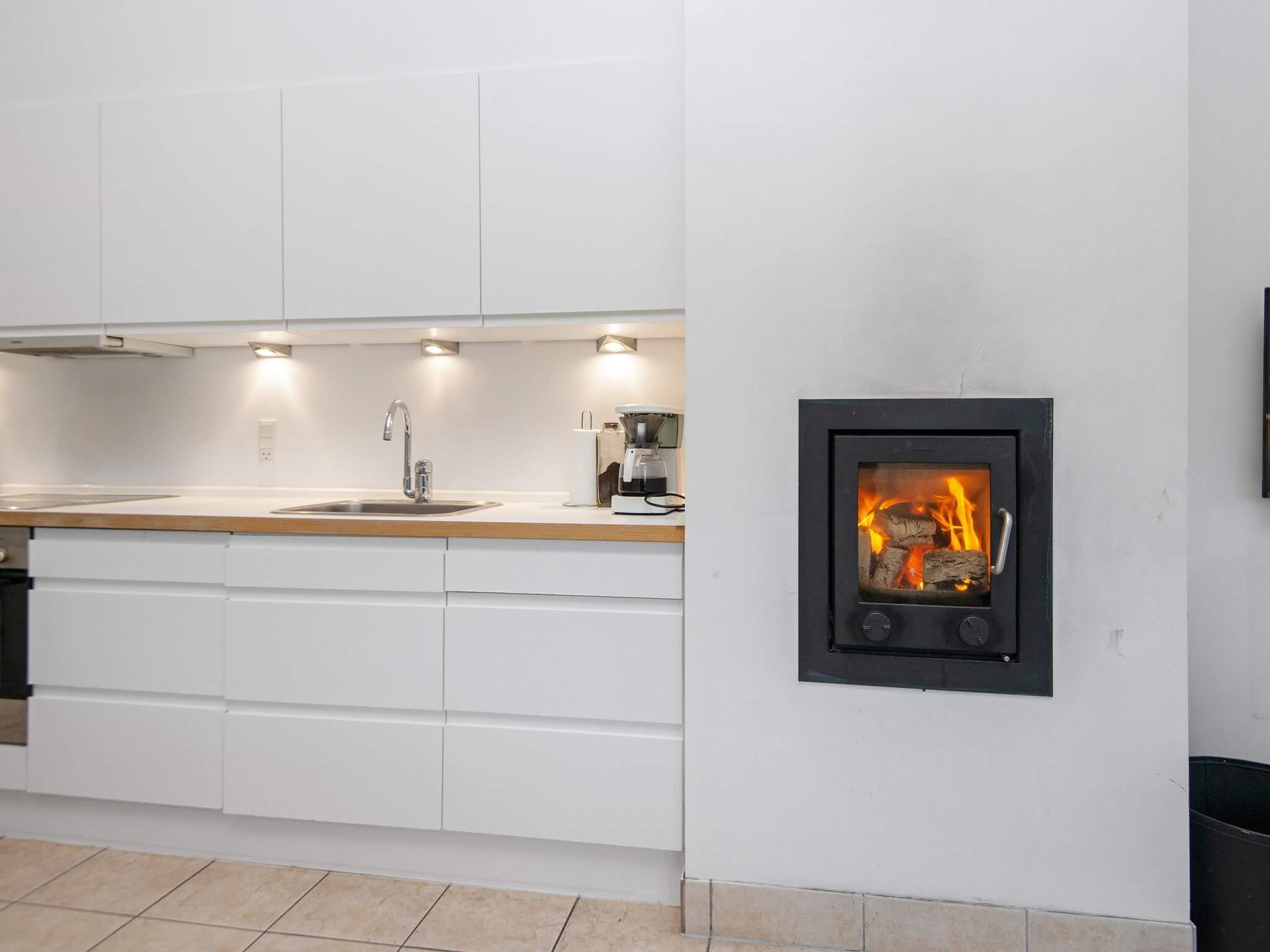 1 Opholdsstue: Brændeovn, Chromecast, tv, høj stol