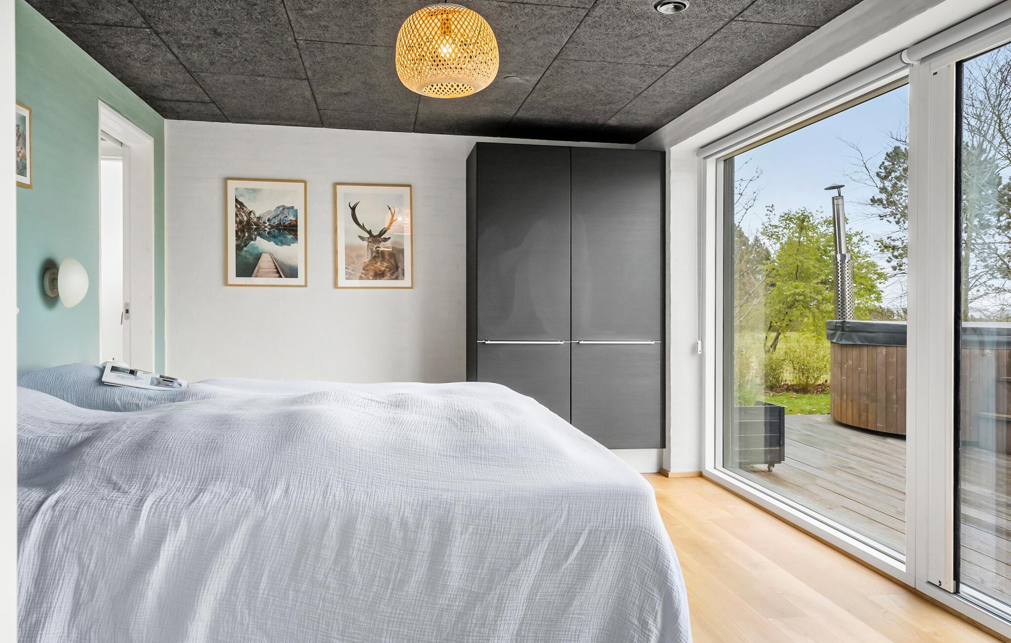 Velkommen til dette skønne feriehus, der vil give jer en uforglemmelig ferie sammen med jeres familie eller venner. De store rum giver jer masser af plads til at nyde jeres privatliv i soveværelserne eller til at lave mad, lege og slappe af sammen i den store stue. Nyd den spektakulære udsigt over vandet. I de varme sommermåneder kan I også nyde jeres feriemåltider udendørs, grille sammen eller slappe af i vildmarksbadet. I har også en dejlig tagterrasse, hvor I kan nyde solen og udsigten over fjorden.