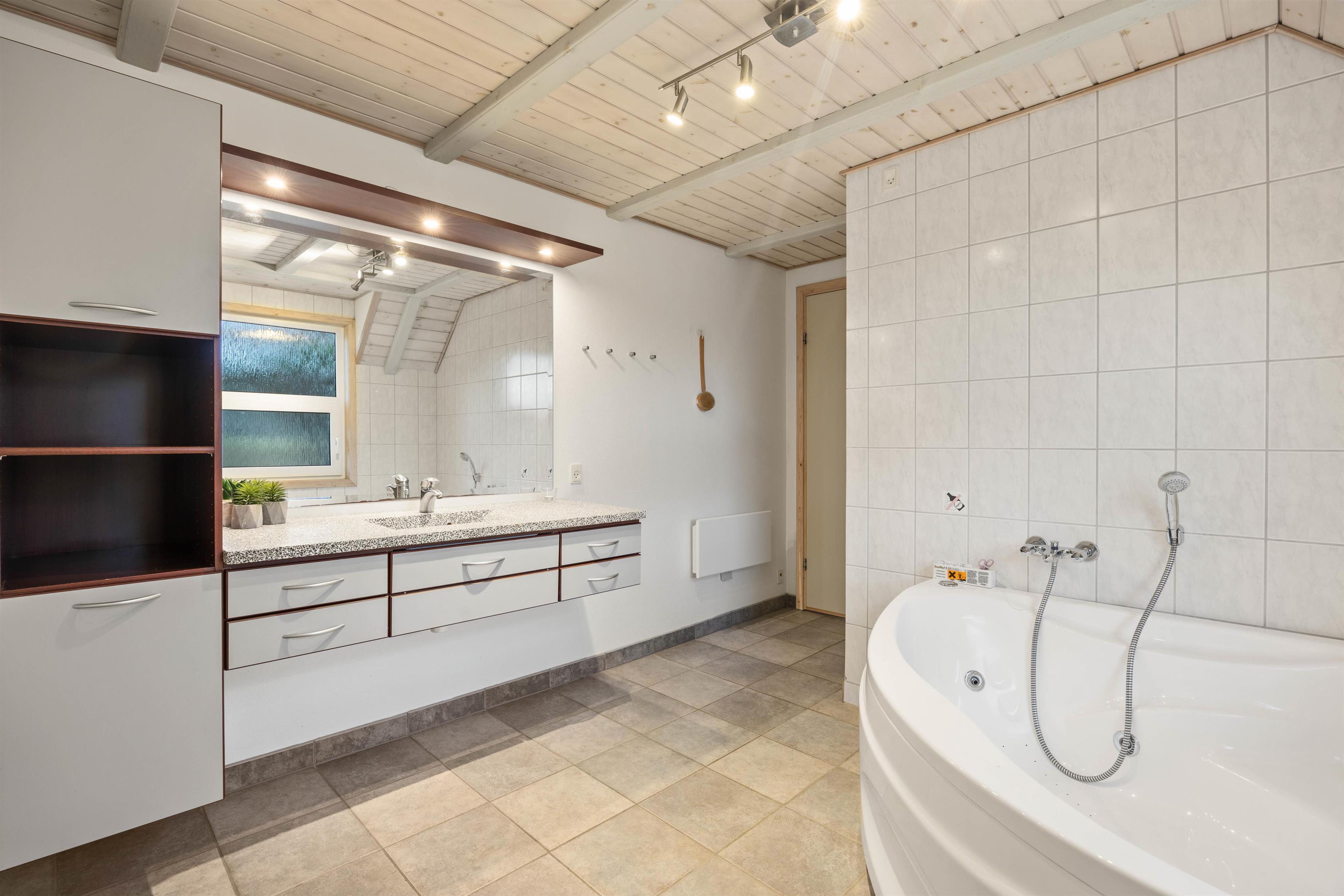 Et højdepunkt på Mathiases Toft 23 er den varme sauna og tømmespaen til to personer, som I finder på ét af de to badeværelser. Kom helt ned i gear og mærk varmen strømme gennem kroppen – helt perfekt selvforkælelse efter en lang gåtur på stranden. Begge badeværelser er udstyret med gulvvarme, og på det andet badeværelse finder I både vaskemaskine og tørretumbler, der gør ferien mere fleksibel, særligt ved længere ophold.