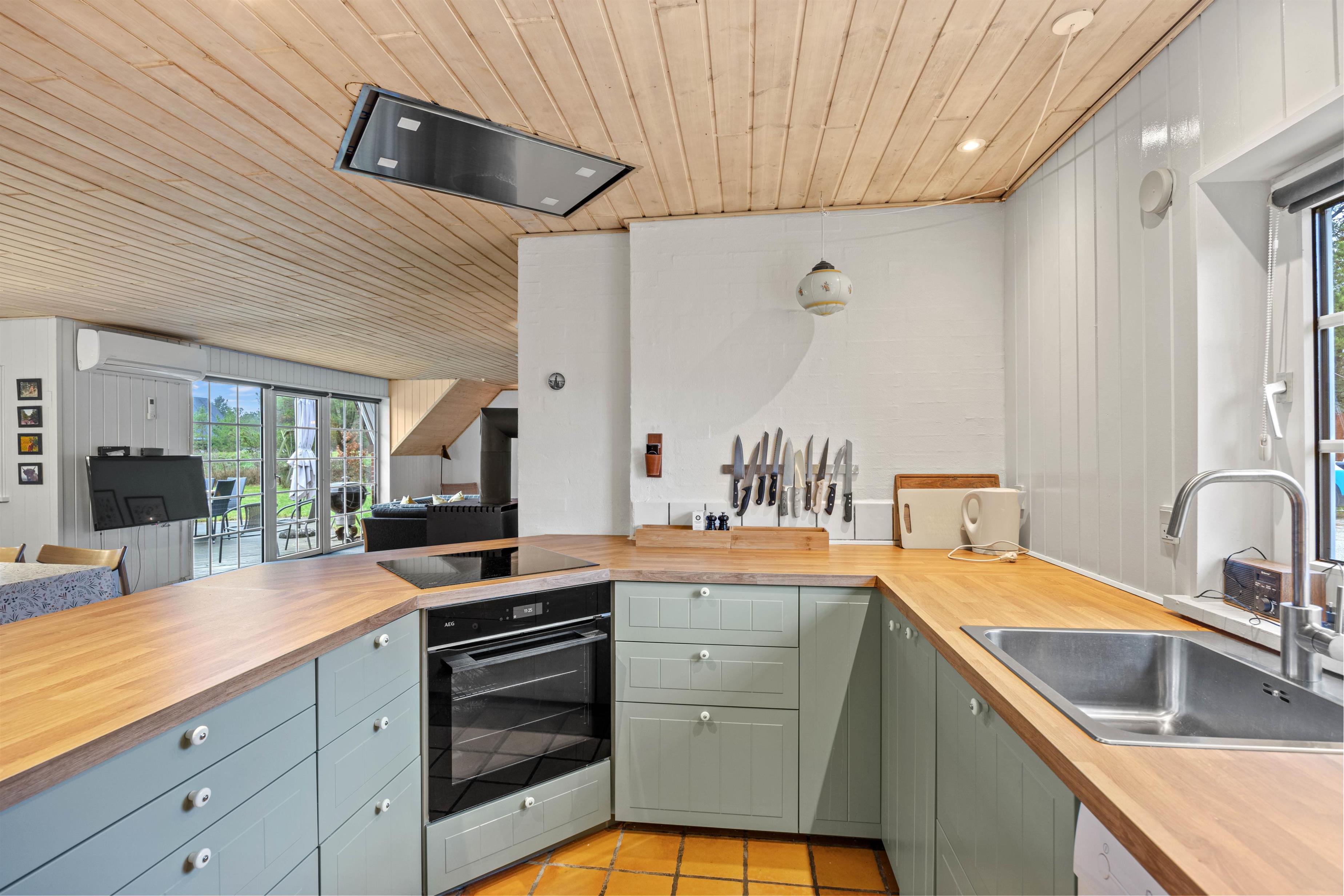 Med et rummeligt boligareal på 182 m², kan sommerhuset på Vester Storetoft 46 rumme hele familien. Sommerhusets centrale rum er køkkenalrummet, hvor familien kan samles. Her er der også en brændeovn, som giver ekstra varme på kølige dage, og en energivenlig varmepumpe, der hjælper med at holde et behageligt indeklima.”