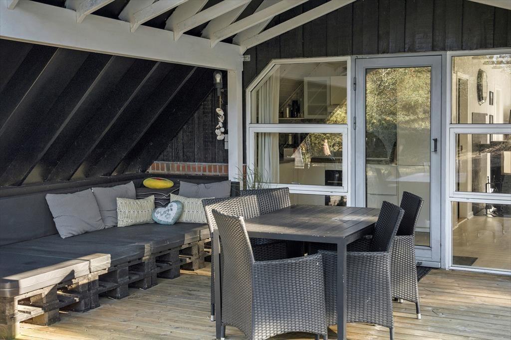 Sommerhusets store træterrasse er udstyret med alt, der kan gøre det udendørs driverliv ekstra sødmefuldt – inklusive kvalitetshavemøbler, gode liggestole og en grill, når aftensmaden skal tilberedes ude i det fri. Både parasollen og det overdækkede terrasseområde kan give skygge, hvis det er det, du trænger til, og lige meget hvor du slår dig ned, kan du nyde naturgrundens smukke og fredfyldte omgivelser. Også fra husets udespa har du udsigt til lilla lyng og krogede fyrretræer, og selv på årstider, hvor der er sne på stråtaget og de marehalmsklædte klitter, kan det føles helt magisk at sidde her i det varme vand.
