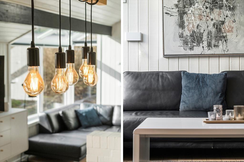 Når I træder indenfor i sommerhuset, bliver I mødt af en lys og indbydende atmosfære. Det åbne køkkenalrum er husets samlingspunkt, hvor der er rig mulighed for hyggelige stunder sammen. Her kan I forberede lækre feriemåltider, mens I holder øje med de legende børn, som allerede har fundet vej til den lukkede terrasse. I de kølige måneder er det en fornøjelse at trække sig tilbage til stuen og lade brændeovnens varme sprede sig i rummet. Efter en dag med udendørs aktiviteter kan I nyde en afslappende stund i saunaen eller hygge foran brændeovnen.