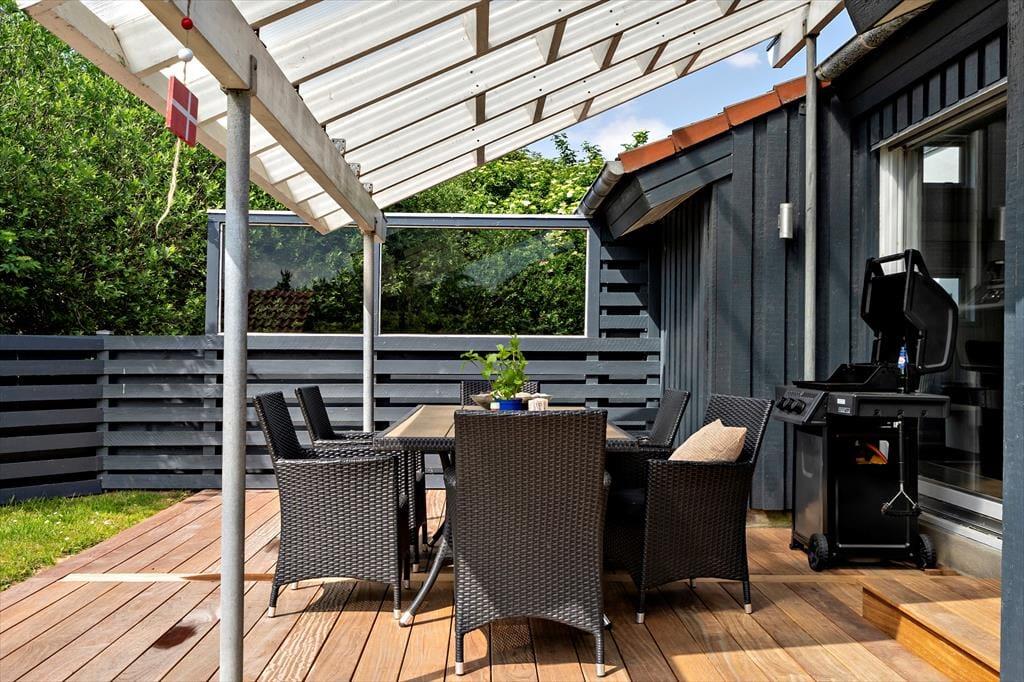 Sommerhuset på Hjelmevej 33 byder på både overdækket og lukket terrasse, hvilket giver de voksne mulighed for at slappe af, mens børnene leger frit i den sikre have. Gynge og sandkasse vil helt sikkert være et hit blandt de små, som kan bruge timevis på at lege. Samtidig kan I nyde den friske luft og den stille ro, der kendetegner Søndervig. Uanset vejret kan terrassen bruges hele året, og med den overdækkede del kan I sidde i tørvejr, mens I nyder en varm drik eller et godt glas vin, mens børnene fortsætter legen.