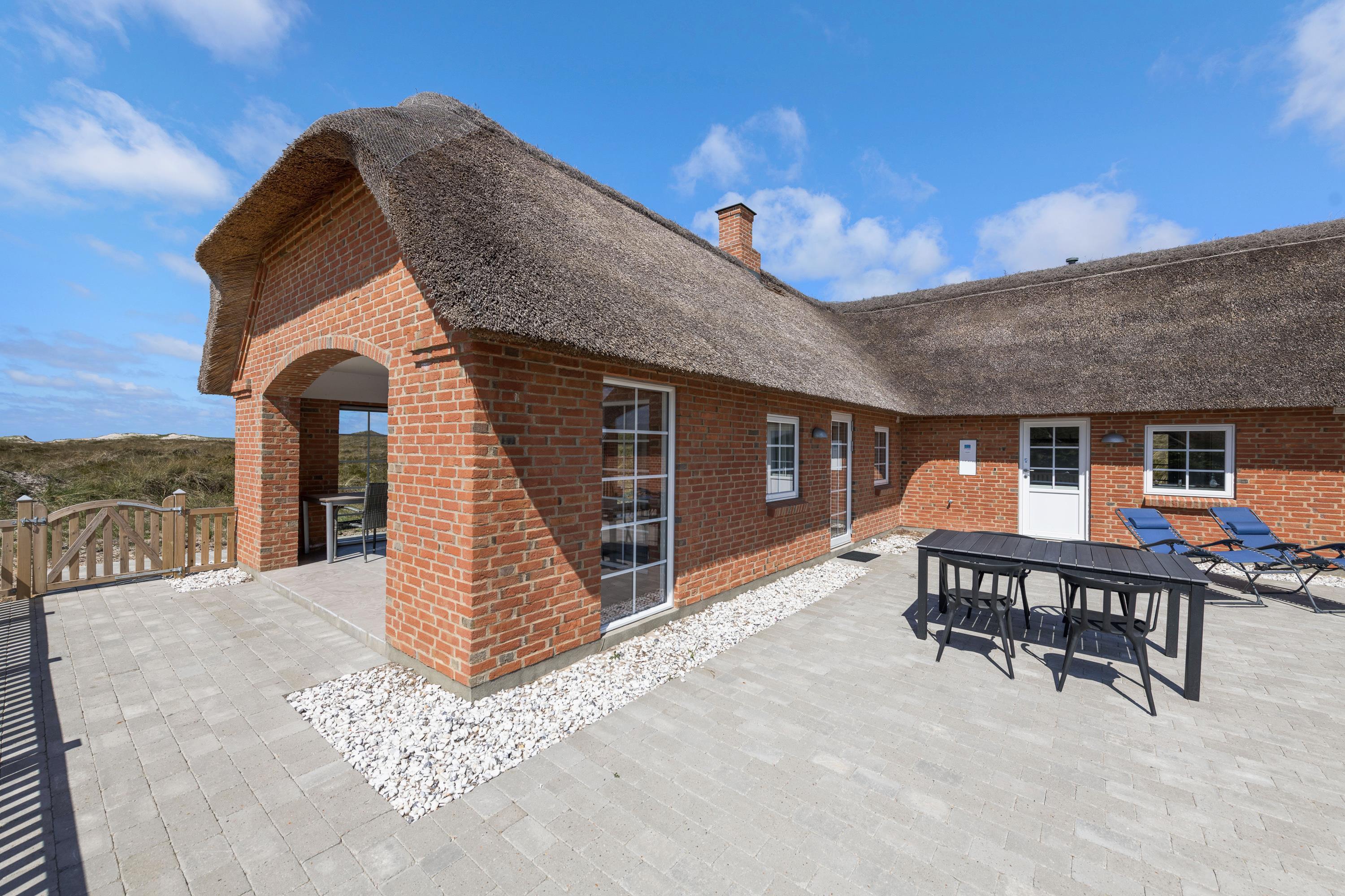 Den første kop morgenkaffe nydes på terrassen med ryggen op af husmuren, der er godt i gang med at optage solens varme. Udsigten er fantastisk – lyngens rødbrune toner blander sig med det lysegrønne spil fra marehalmen, om sommeren synger lærken over sin rede i klitterne og altid har I lyden af bølgerne, som kalder til en morgentur på stranden. Her er det smukt hele året rundt. Indenfor indbyder den stilfulde indretning til mange hyggelige timer med fællesskab og hygge i stuen med brændeovnen eller med fælles madlavning i det åbne moderne køkken med opvaskemaskine.
