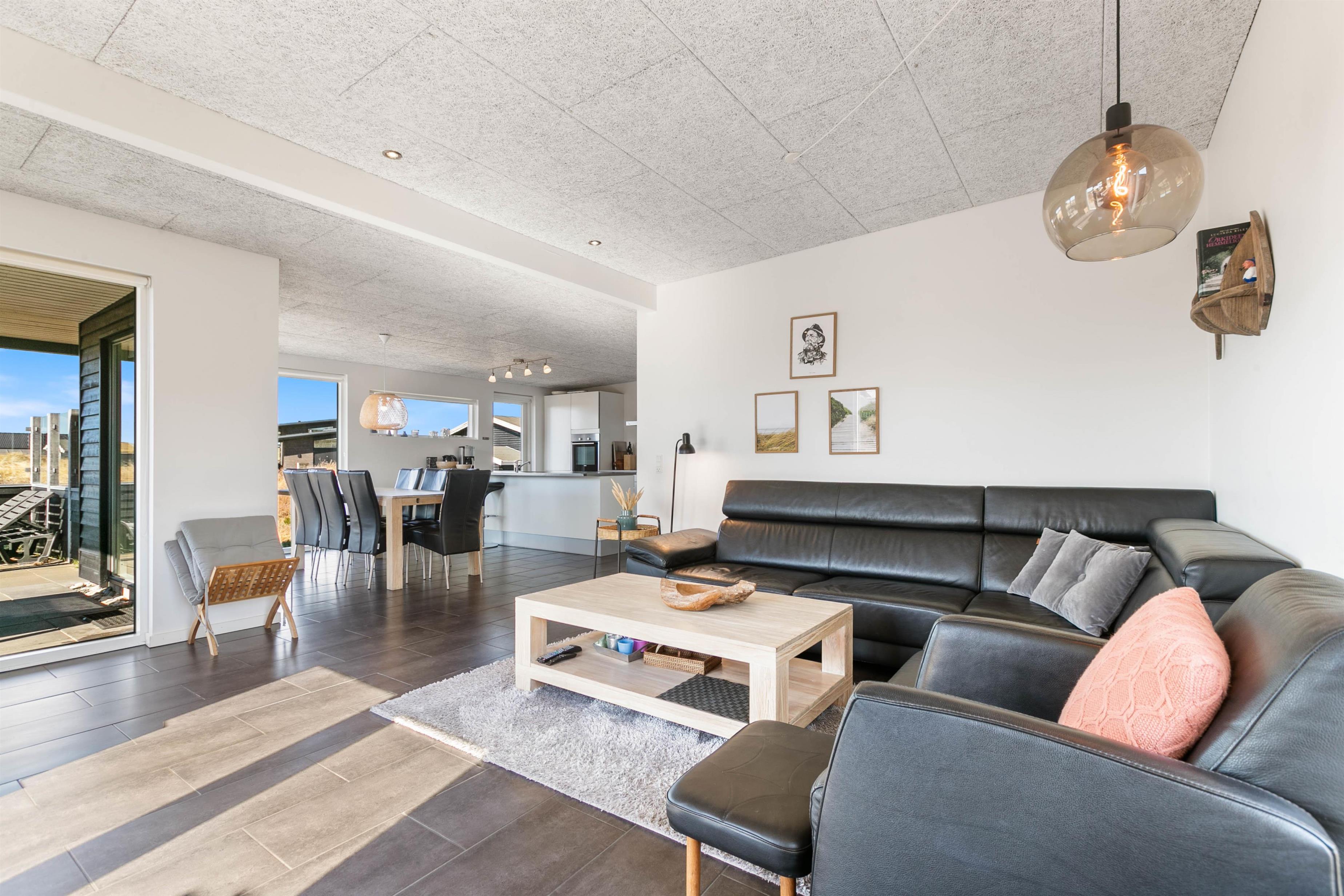 De store vinduer i huset sørger for et godt lysindfald uanset årstiden. I dette moderne og stilfulde feriehus kan du tilbringe en afslappende ferie med din familie eller dine bedste venner. Huset er yderst veludstyret og råder både over vaskemaskine, tørretumbler og opvaskemaskine, der alle er med til at gøre din ferie så bekvem så mulig.
