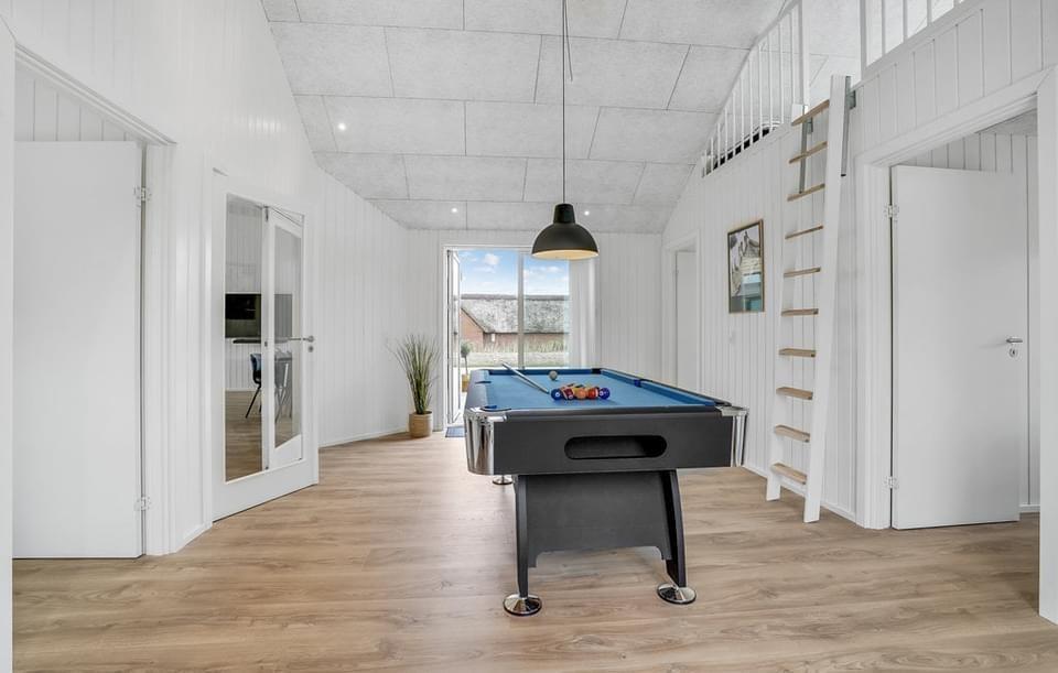 Det fantastiske udvalg af aktiviteter gør dette poolhus til et sandt paradis for underholdning. Den 15 m² store pool inviterer til afslapning og vandleg for både store og små. Som et aktivitetshus tilbyder det også en bred vifte af indendørs aktiviteter som poolbillard og bordtennis, hvilket sikrer sjov og leg for hele familien. Haven byder på en trampolin, der vil begejstre de yngre gæster, samt en indbydende naturgrund med gynger og sandkasse.