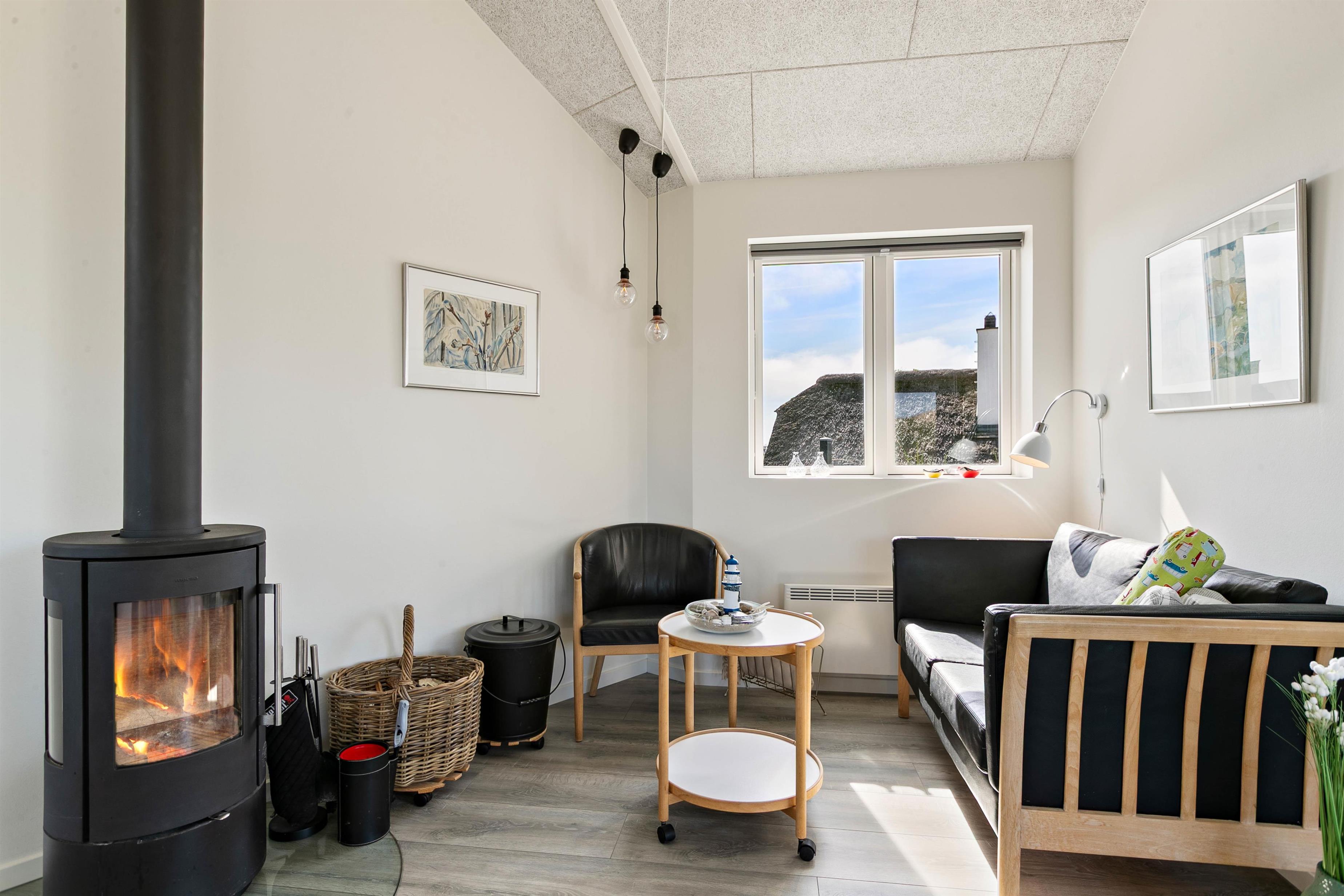 Trætte efter en lang og oplevelsesrig feriedag kan I slutte aftenen af på sofaen, hvor I kan læne jer godt tilbage, mens den knitrende brændeovn spreder varme og hyggelig stemning.