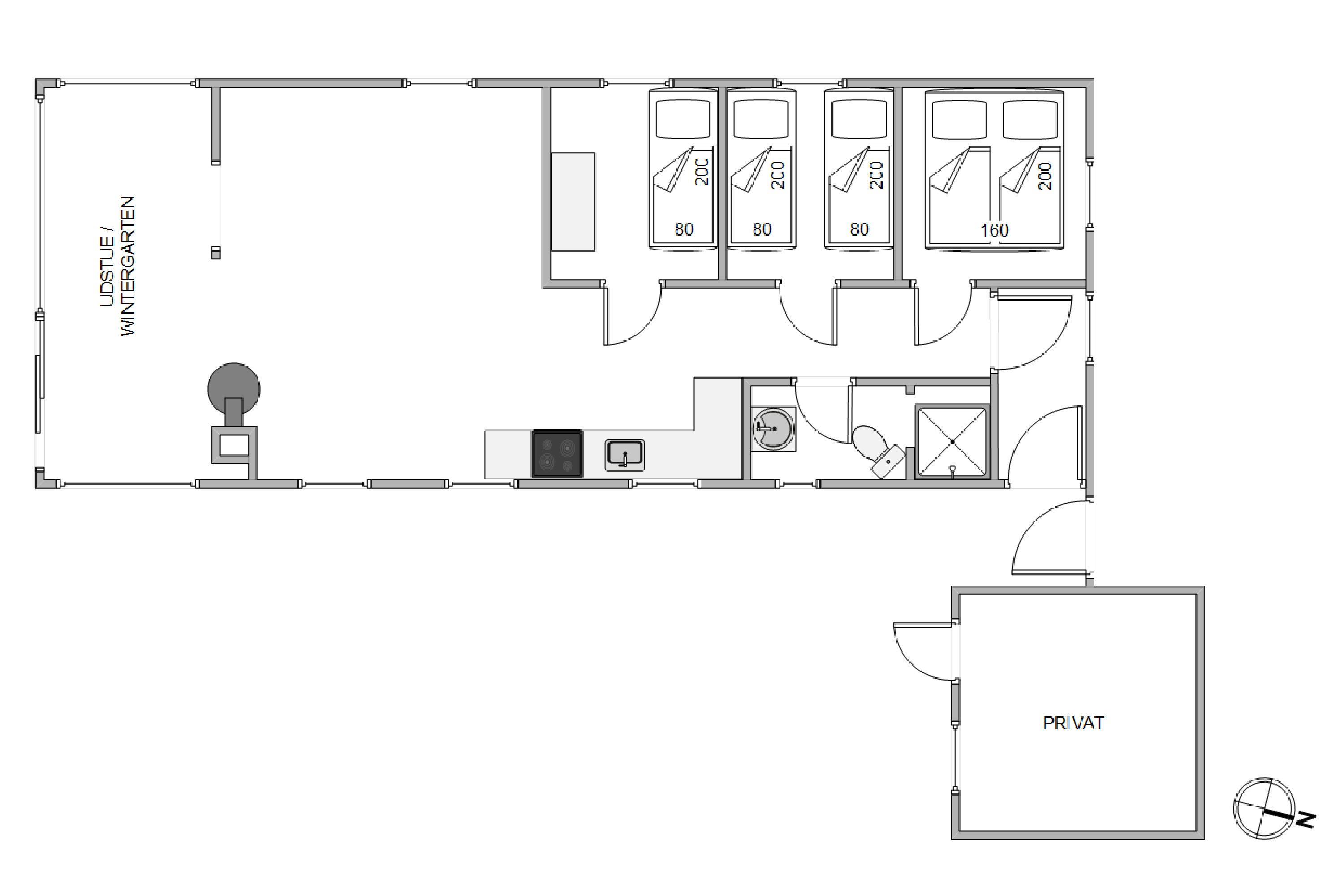 Mens I har gang i madlavning, spil og film i alrummet, sørger brændeovnen og dens knitrende flammer for, at den hyggelige feriestemning bliver fuldendt. Den energibesparende varmepumpe sørger for en konstant og behagelig varme. Fra alrummet kan I desuden træde ud i den lyse, hyggelige udestue, hvor I også har mulighed for at nyde nogle hyggelige stunder sammen i løbet af ferien.