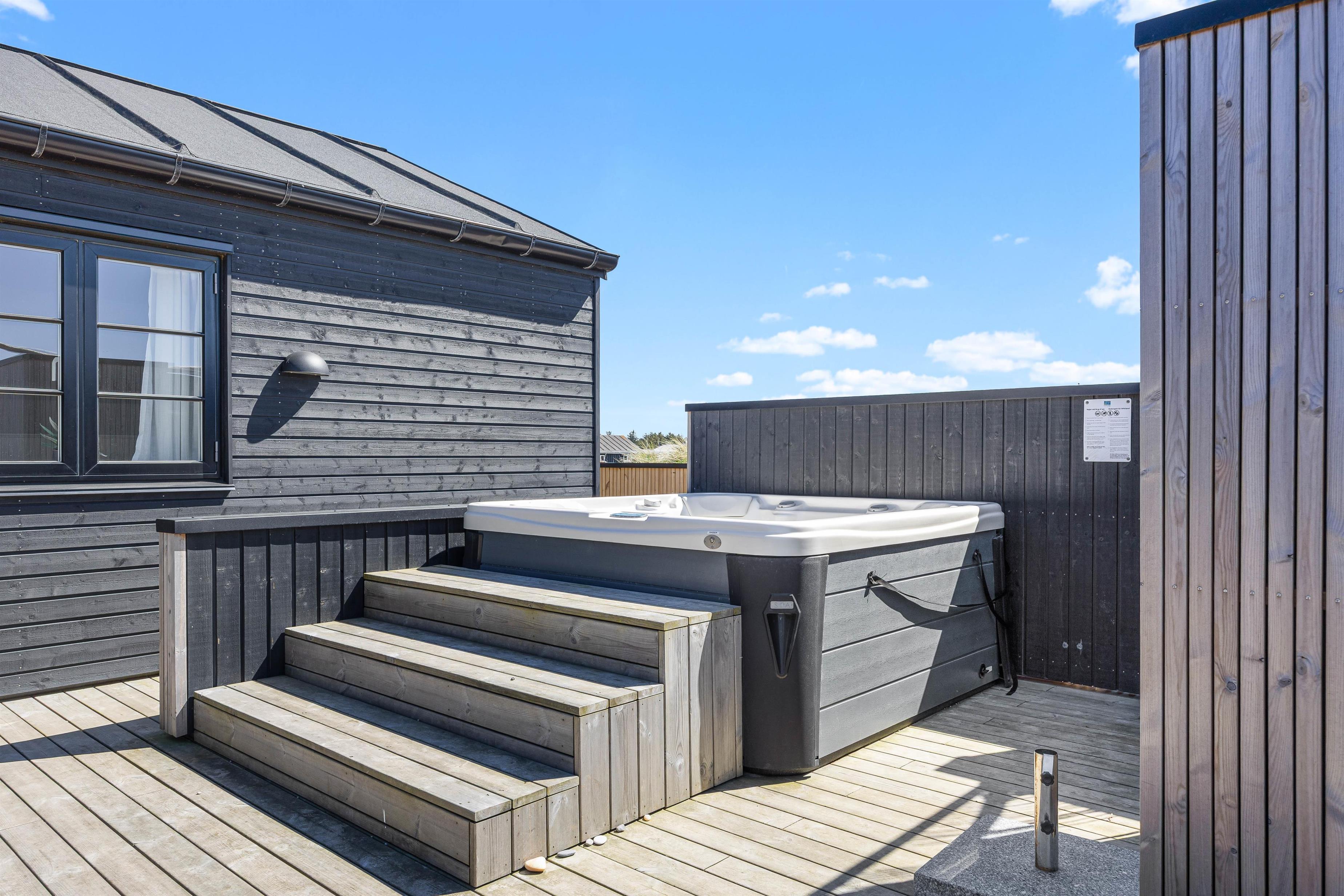 Et af sommerhusets højdepunkter finder I netop her på terrassen: en skøn udespa og en udesauna. Her kan I nyde lidt ekstra velvære – og uanset årstiden, er det skønt at sidde i spaen med noget koldt at drikke, mens I nyder stjernehimlen.