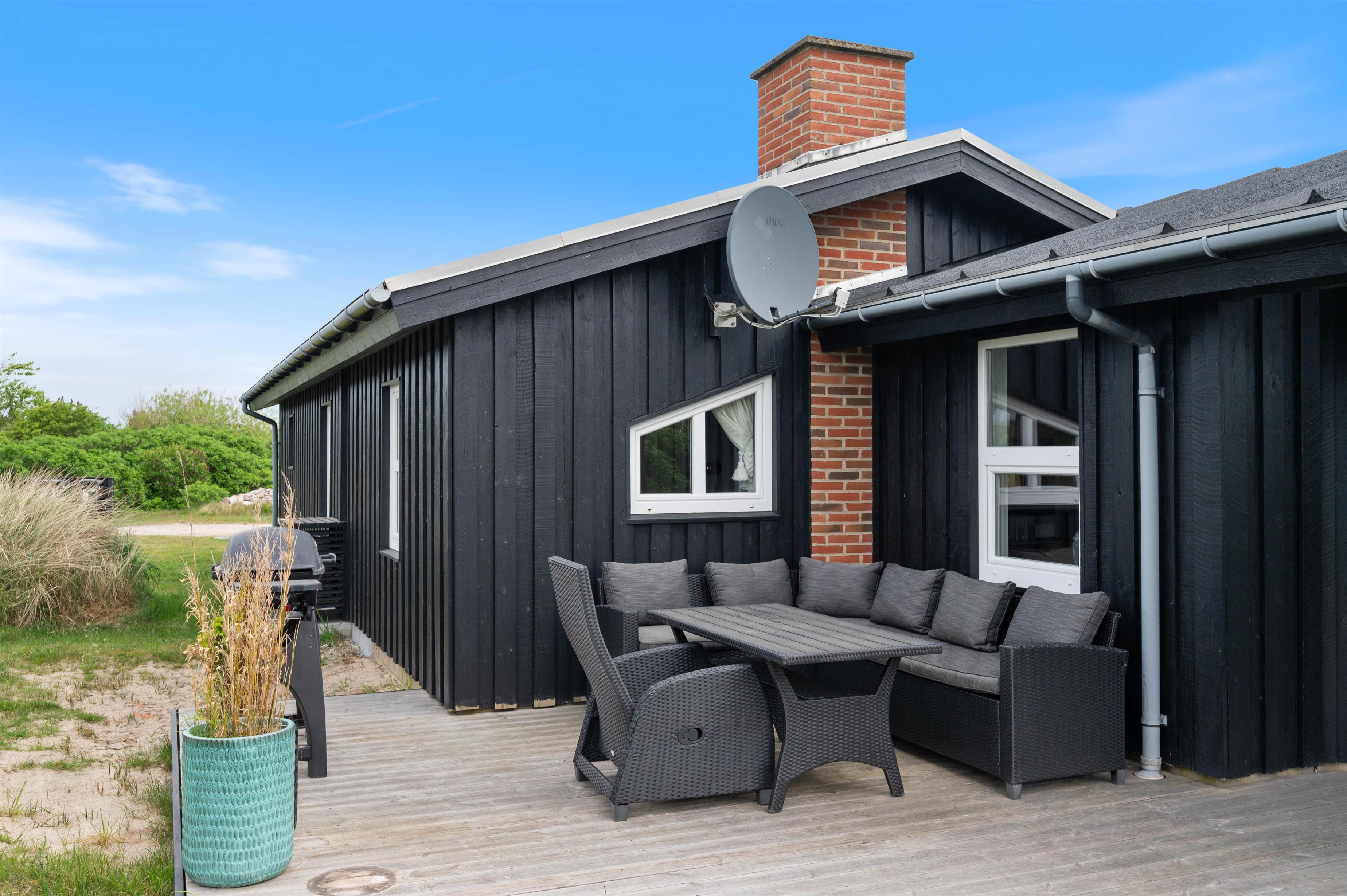 Med en ferieadresse på Frans Julius Vej 8 får I en dejlig stor naturgrund på godt 2200m2 at boltre jer på. Haven ligger lige midt i klitlandskabet og her vil både hunde og børn nyde at tumle rundt. Fra den skønne træterrasse kan de voksne holde sidde og nyde en kølig drink eller en dejlig kop kaffe. Her er både havemøbler og solvogne til privat afbenyttelse og terrassen er delvist overdækket, så I også kan finde en skyggekrog eller læ for vinden. På terrassen kan I også tilberede et lækkert måltid mad på gasgrillen mens I nyder det gode vejr.