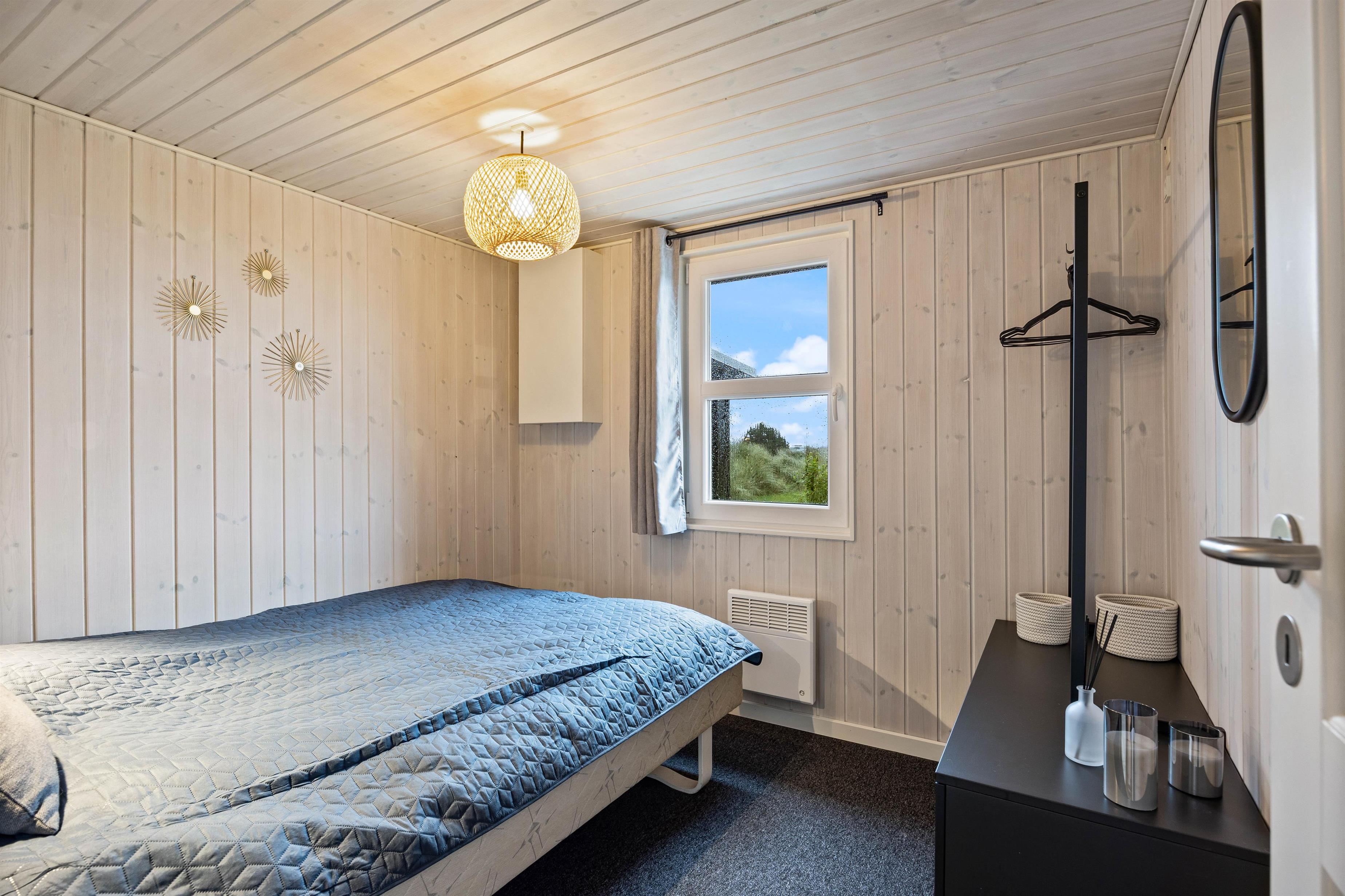 Ferieboligen indeholder 3 soverum og et nyt lækkert badeværelse, som blev renoveret i 2022. Her er både egen sauna og tømmespa, så I rigtigt kan få ladet batterier op på ferien og bare slappe af. Der er en dejlig opholdsstue i direkte forbindelse med køkkenet, så alle kan følge med i madlavningen og planlægningen af feriens kommende aktiviteter. Her fra stuen er der desuden direkte udgang til den udendørs træterrasse, der går næsten hele vejen rundt om huset. I opholdsstuen er der også store panoramavinduer som tillader en masse dejlig sollys at slippe ind i sommerhuset og giver et smukt udsyn udover det omkringliggende karakteristiske jyske klitlandskab.