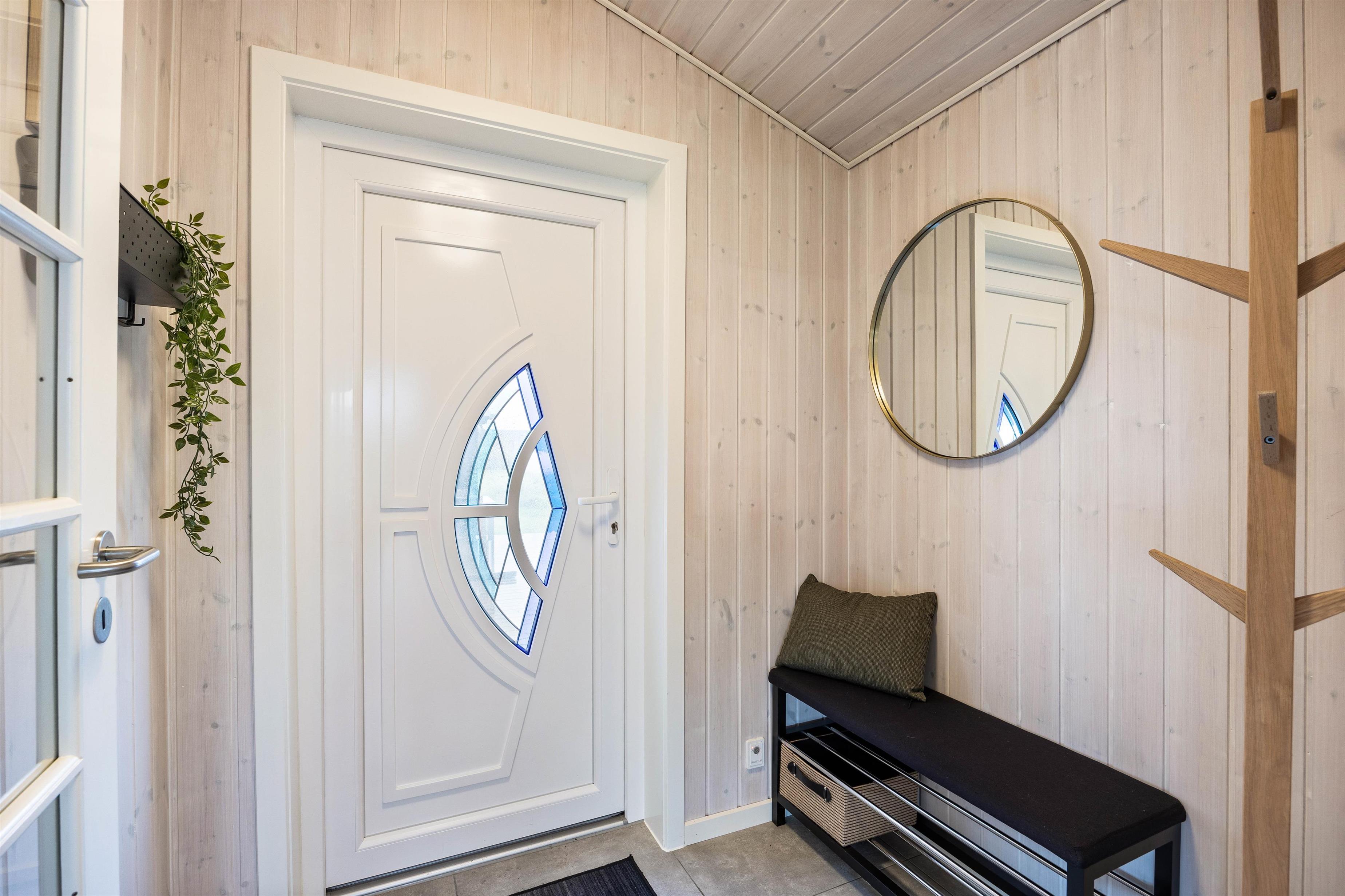 Så snart I træder ind i sommerhuset bliver I mødt af en dejlig, klassisk sommerhusstemning med træpaneler på væggene og dog et moderne udtryk i de pæne møbler og den lyse indretning.