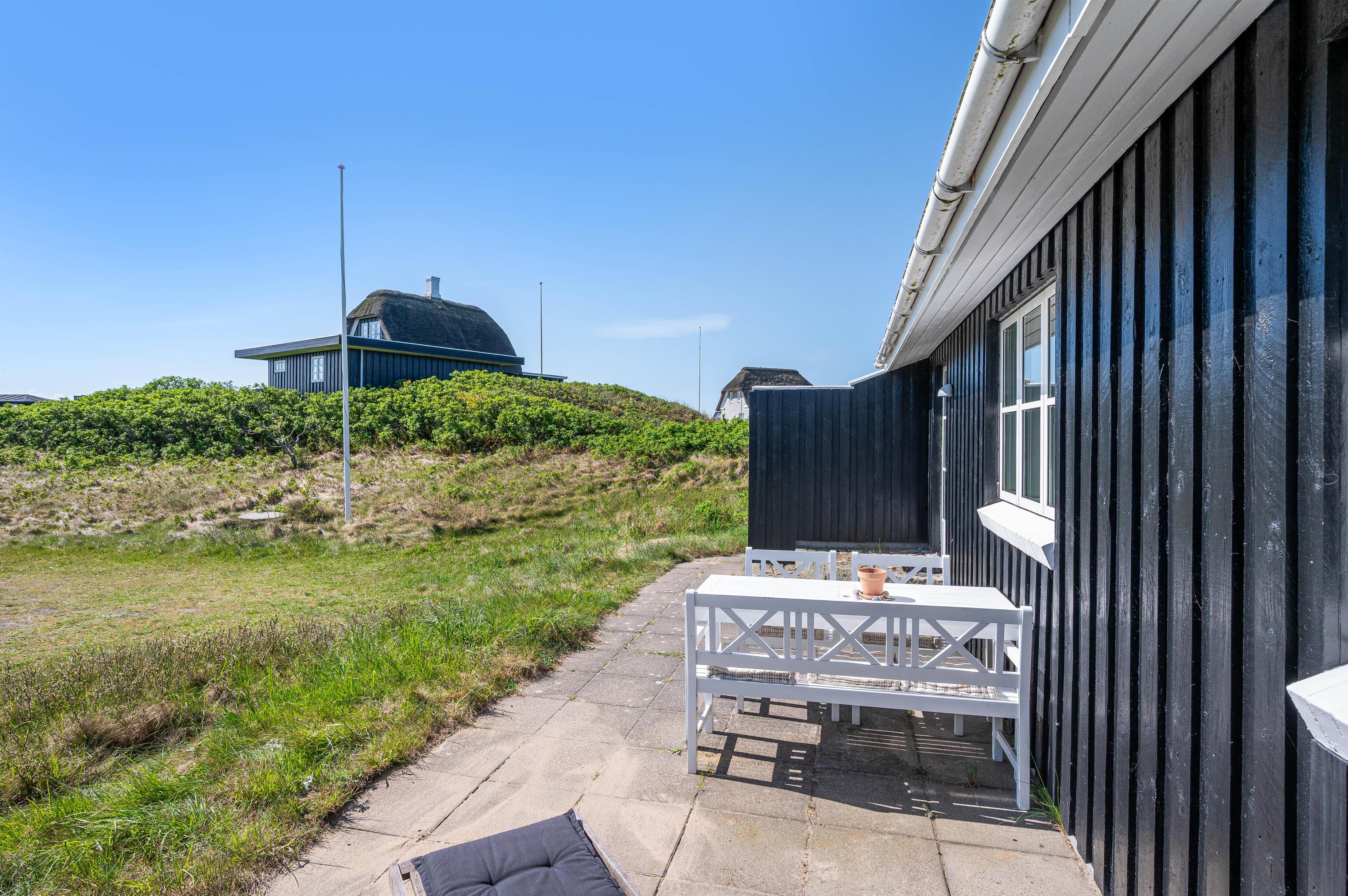 På den østvendte, afskærmede terrasse kan I nyde morgensolen og en kop kaffe i ro og mag, mens den vestvendte terrasse indbyder til hyggelige grillaftener og et glas vin, mens solen går ned over klitterne.