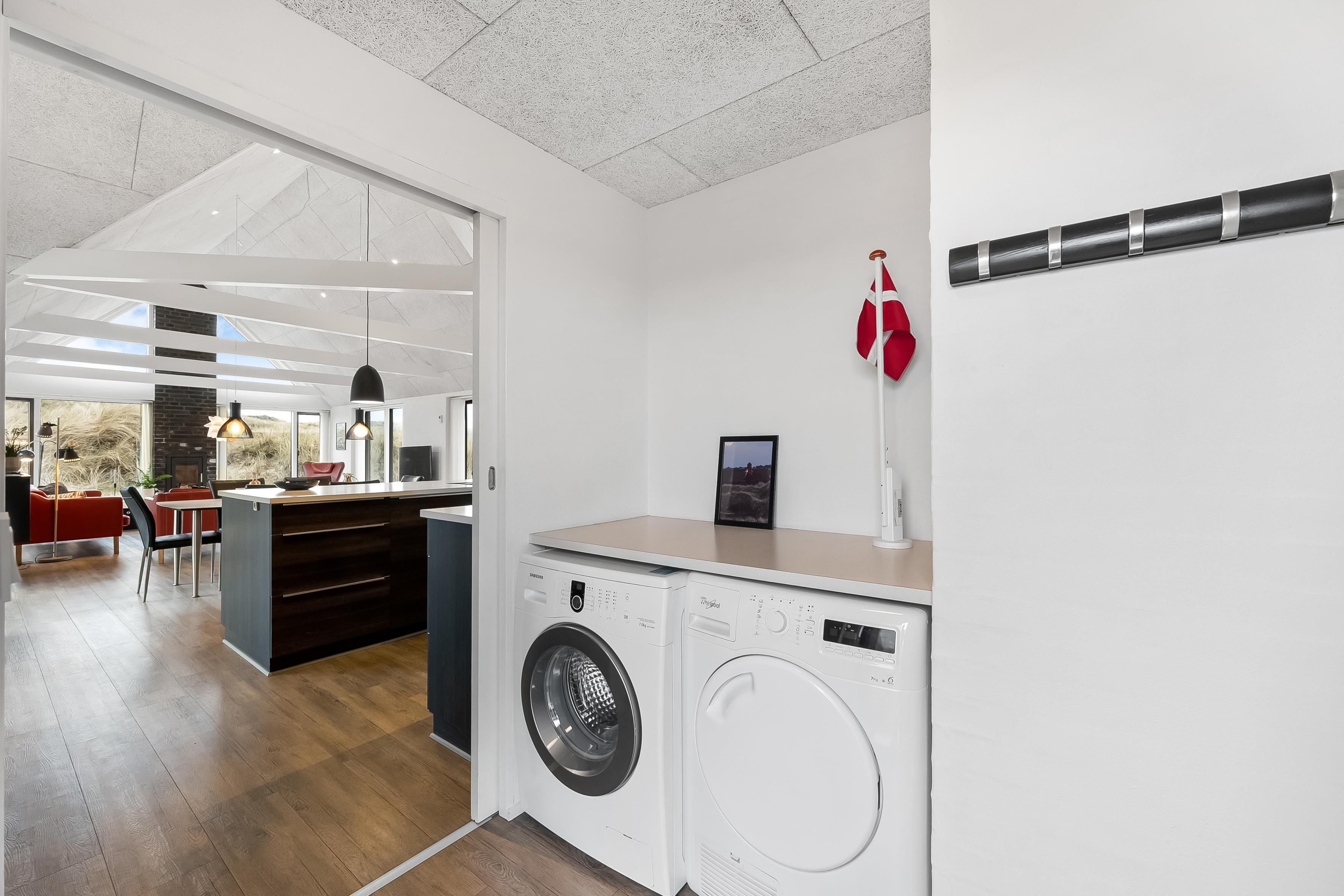 I det rummelige åbne køkken og opholdsstue møder moderne elegance praktisk funktionalitet. Store vinduer tilbyder panoramaudsigt over de betagende klitter, mens møbler af høj kvalitet inviterer dig til at slappe af og koble fra. Et fladskærms-tv med satellitmodtagelse af tyske kanaler, en dvd-afspiller og Wi-Fi sørger for underholdning for hele familien. En brændeovn skaber en hyggelig atmosfære på kølige aftener. En energieffektiv varmepumpe og gulvvarme i hele huset sikrer behagelige temperaturer året rundt.