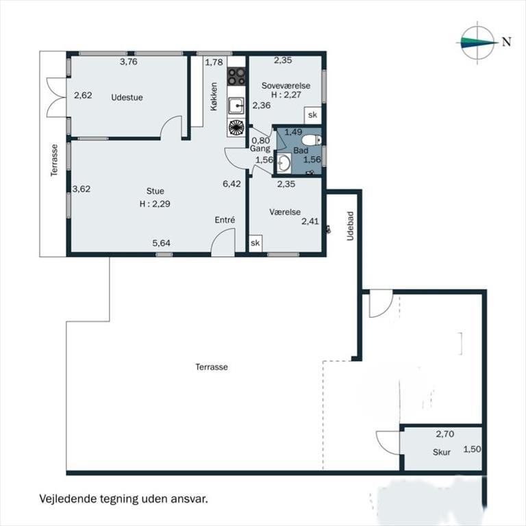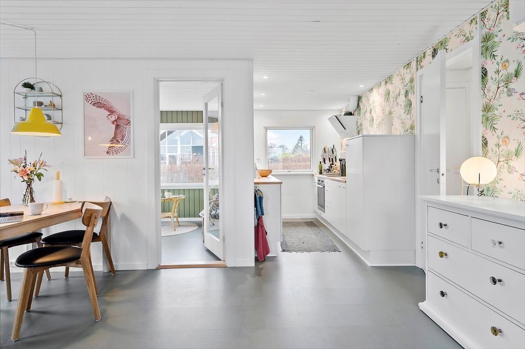 Husets hjerte er det åbne alrum, hvor køkken, spiseplads og stue smelter gnidningsløst sammen og indbyder til samvær samt hyggelige stunder. Det moderne køkken er fuldt udstyret, så du nemt kan trylle lækre måltider frem, mens de andre slapper af i de bløde møbler eller nyder kop kaffe ved spisebordet. Stuen er indrettet med sans for både æstetik og komfort – her kan du synke ned i sofaen med en god bog eller sætte en film på, mens aftenen langsomt falder på.
