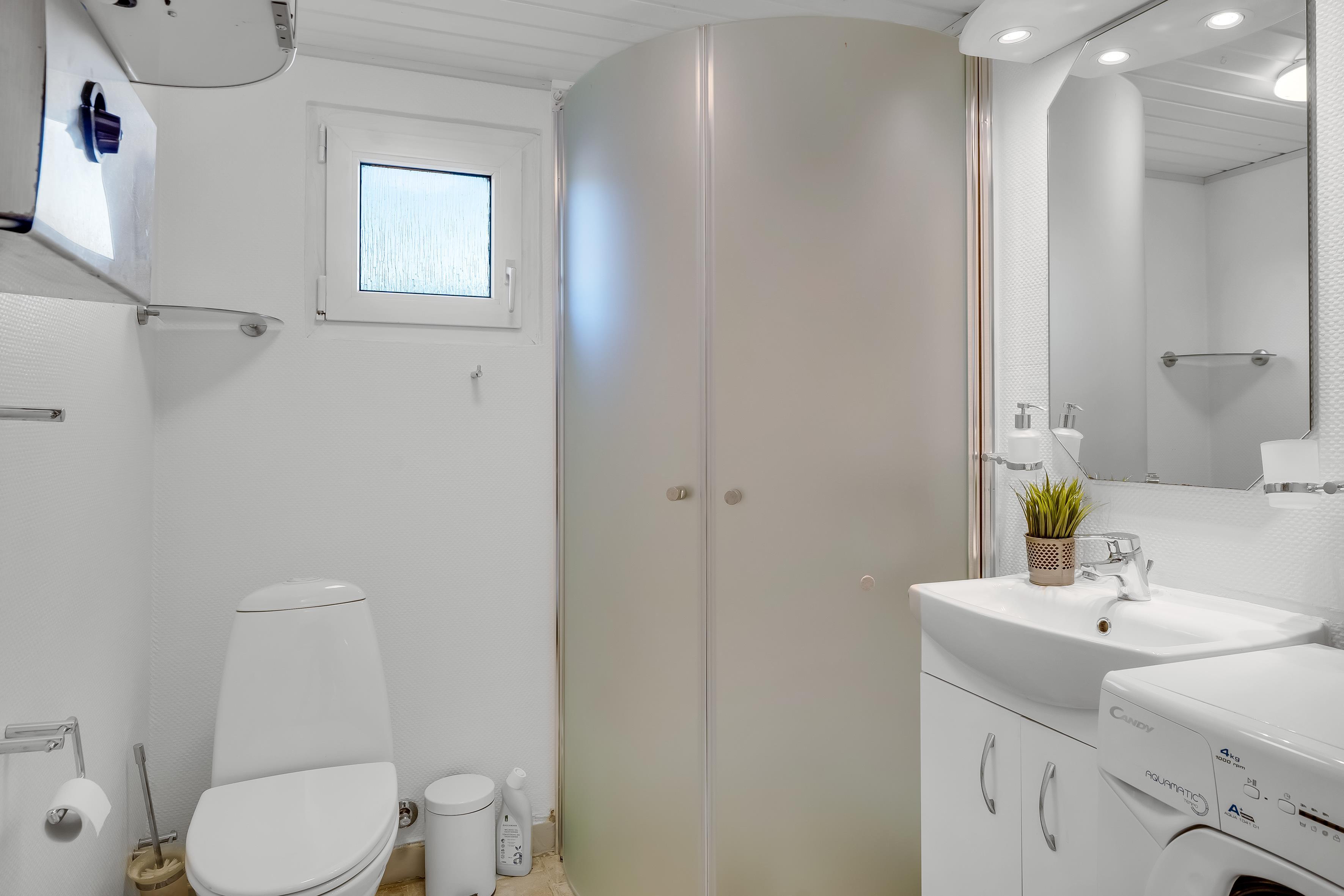 Køkkenet er fuldt udstyret med moderne apparater, herunder en induktionskomfur, ovn, mikrobølgeovn, opvaskemaskine, køleskab og fryser med en kapacitet på 40 liter. Dette gør det nemt at forberede lækre måltider til familie og venner. Der er også en vaskemaskine, så du kan holde tøjet friskt under dit ophold.