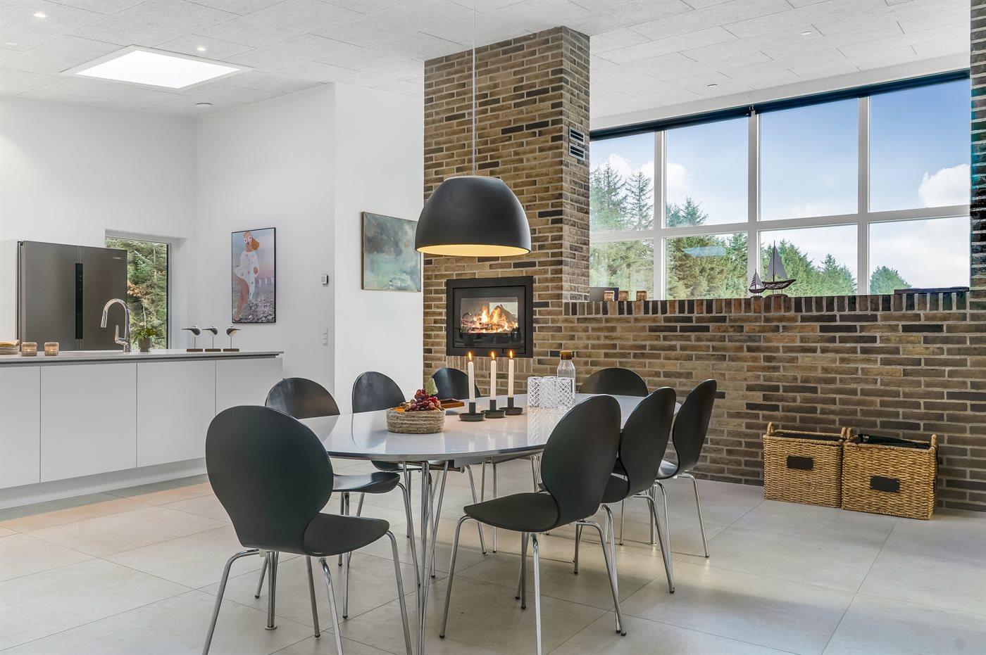 Huset ligger i et roligt og naturskønt område med god afstand til naboerne. Det er ikke ualmindeligt at spotte rådyr eller harer på grunden, og den nærliggende sti 100 inviterer til løbe- og gåture i det smukke landskab.