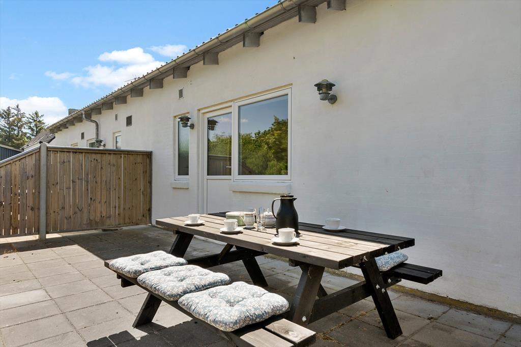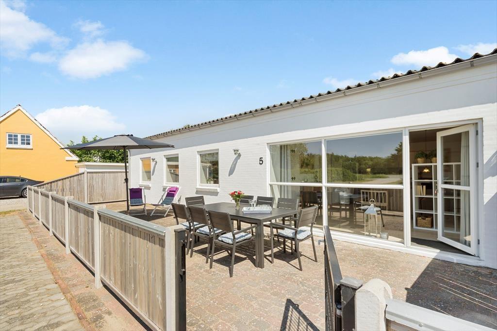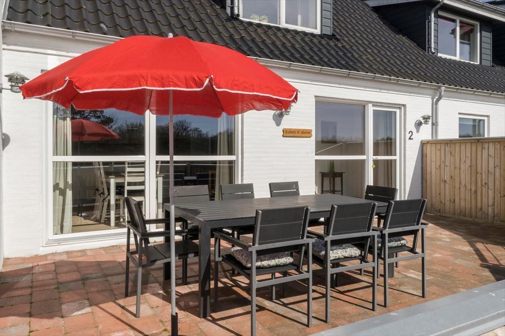 Til lejlighederne hører adskillelige terrasser hvor man i ro og mag kan nyde solen, hinandens selskab og en god kop kaffe. Størstedelen af terrasserne er indhegnet og derfor oplagt for børnefamilier og hundeelskere. Huset er beliggende på en stor grund med god parkering og en mindre græsplæne til hyggespil på de lune aftner. Ved indkørsel til lejligheden løber der en cykelsti, hvis man kører til højre, kan man følge den helt til Thorsminde. Kører man til venstre kommer man til Husby Klitplantage med både badesø og udkigspunkt. Man kan også følge cykelstien videre til byen Ulfborg.