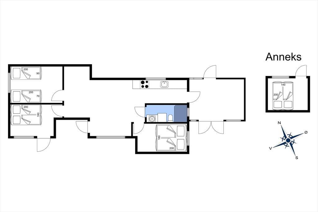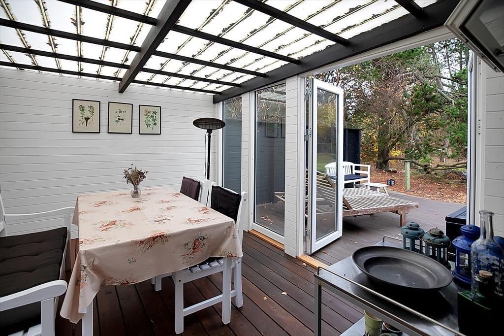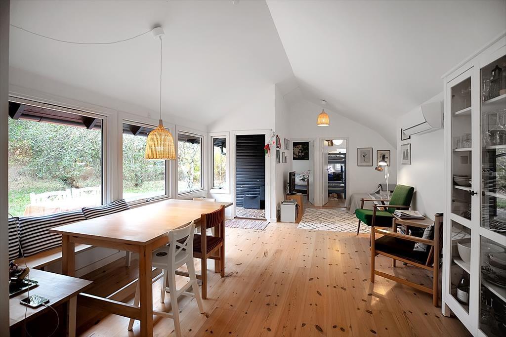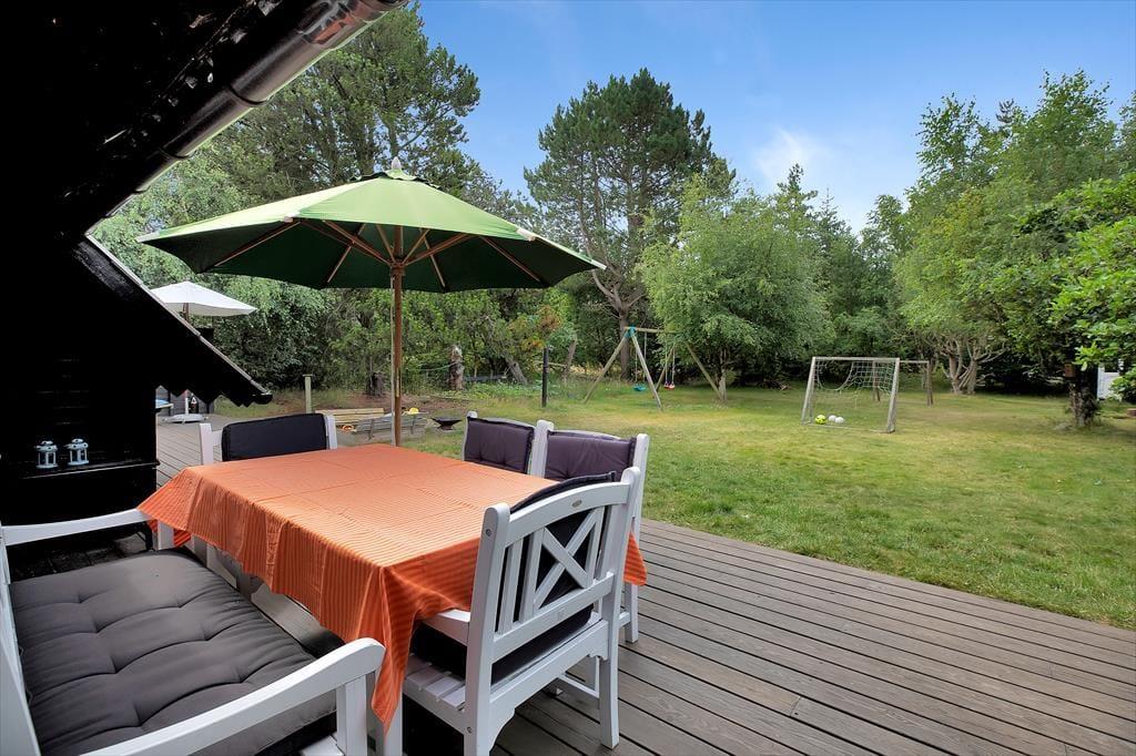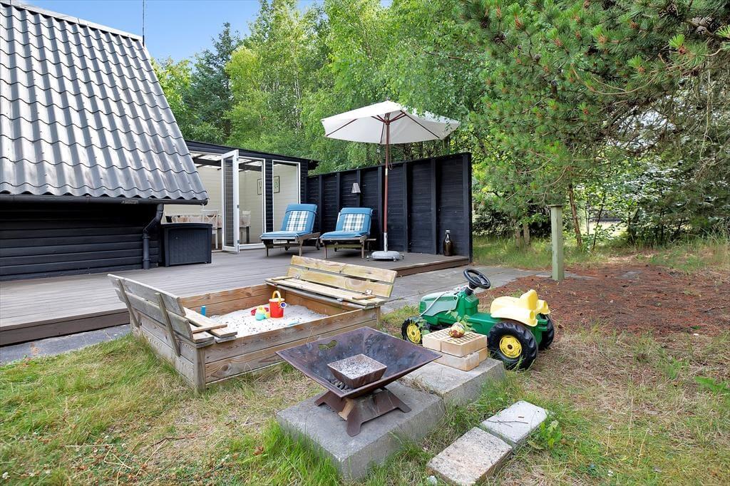 Sommerhuset er indrettet med hyggelig stue, her kan du fordybe dig i en god bog eller hvad med et slag kort og en latte. Du kan også benytte dig af husets gode internetforbindelse hvor du bl.a. kan streame en god film. I forbindelse med stuen er der et fint åbent køkken bl.a. med opvaskemaskine, her kan I hjælpes om at tilberede frokosten. Der er ligeledes adgang til en skøn udestue. Der er et lækkert badeværelse med brus og tre dejlige soveværelser, de to med dobbeltsenge, det tredje med enkeltseng og køjeseng. Der tilhører et særdeles dejligt anneks med dobbeltseng. Alt i huset fremstår lyst og lækkert, så her er alle betingelser for at både børn og voksne kan nyde livet. I den fantastiske og ugenerte have, er der både fodboldmål, sandkasse og, gynger til rådighed. Hele familien kan samles omkring bål stedet eller slå sig ned i en af havens mange hyggekroge. Der er rig mulighed for udeliv.