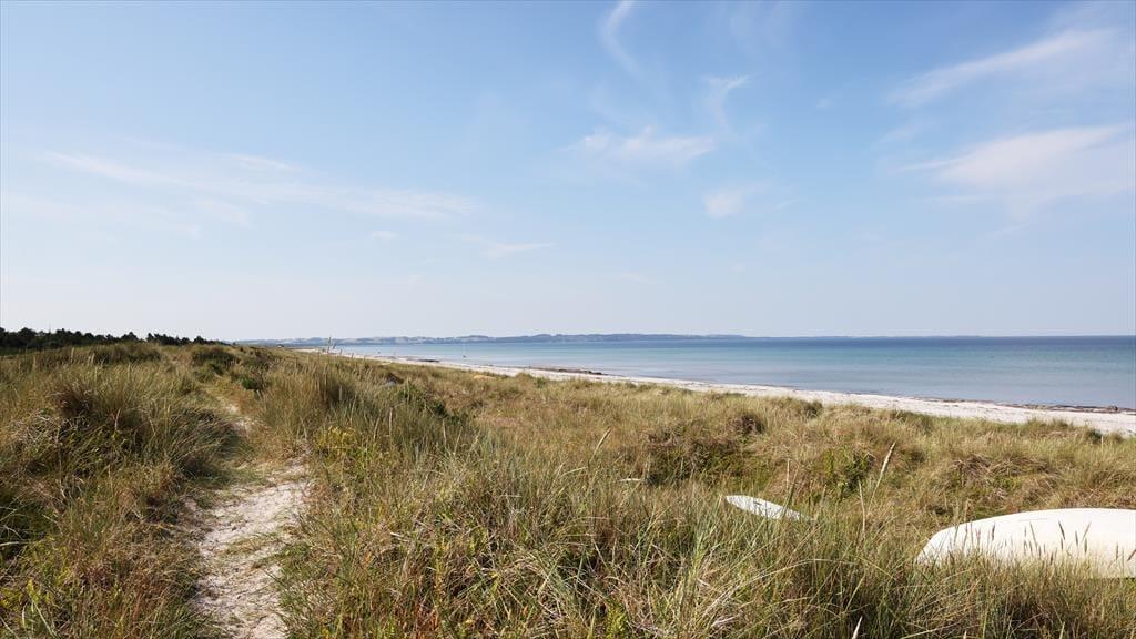 Sommerhuset ligger med adgang direkte til stranden, du skal blot bevæge dig op over sandklitten, så er du på stranden. Her kan I bade fra morgen til aften. Dine børn kan samle små muslingeskaller, bygge deres eget sandslot, eller fiske rejer, mens du lytter til havet. På den skønne terrasse, kan du ligge og nyde solen imens du lytter til fuglenes sang eller være heldig, at se et rådyr løbe forbi. På grunden kan du samtidig opleve den mest fantastiske lyng og sandklitterne, der skærmer mod havet. Selvom du befinder dig ved en af de bedste sandstrande i Danmark, så er du heldig at bo lige ud for den rolige del af stranden.