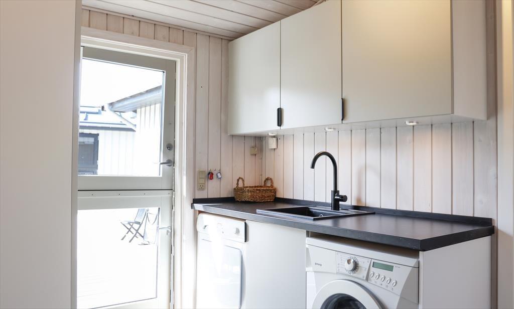 I sommerhuset, vil du med det samme få følelsen af, at være velkommen, alt fremstår lyst, lækkert og særdeles indbydende. Du vil hurtigt få skuldrene ned og mærke, at det endelig er tid til ferie. I den skønne stue, der er placeret i forbindelse med det åbne køkken, kan I samles omkring spisebordet til et brætspil eller en god frokost. Fra terrassen kan du opleve den mest fantastiske solnedgang, mens I deler en flaske vin, efter at børnene er lagt i seng.