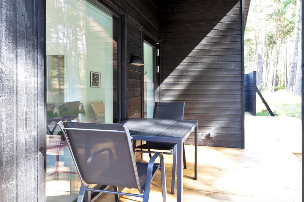 I sommerhuset, vil du med det samme få følelsen af at være velkommen, alt fremstår lyst, nyt, lækkert og særdeles indbydende. Du vil hurtigt få skuldrene ned og mærke, at det endelig er tid til ferie. I den dejlige stue, der er placeret i forbindelse med det åbne køkken, kan I samles omkring spisebordet til et brætspil eller en god frokost. Fra terrassen kan du opleve den fantastiske natur og være heldig at se et rådyr gå forbi, mens I deler en flaske vin, efter at børnene er lagt i seng.