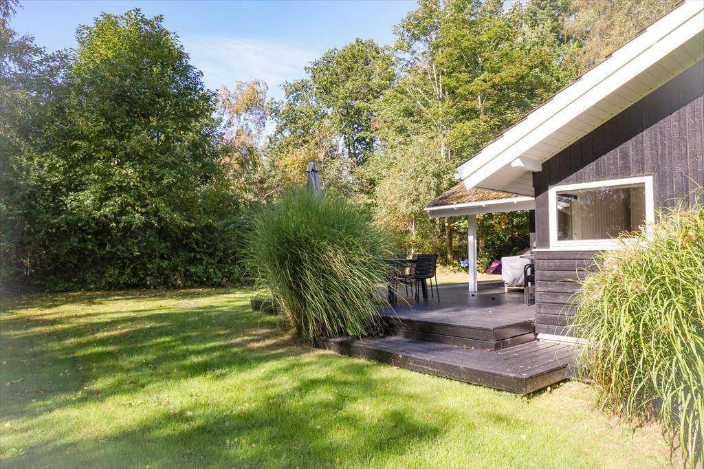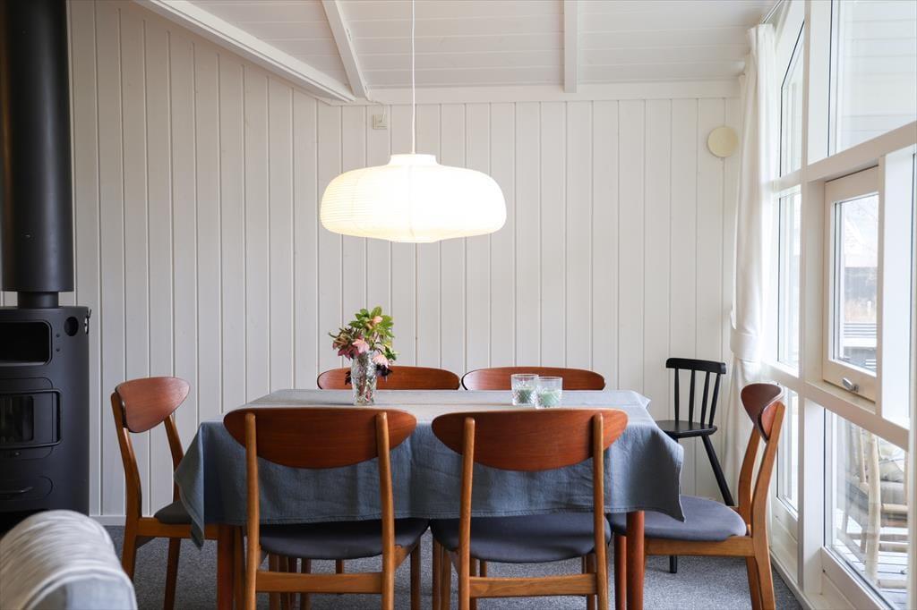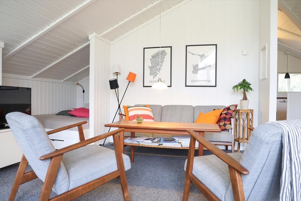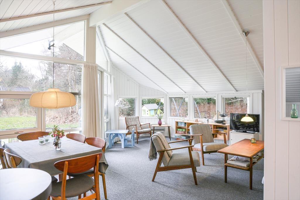 I sommerhuset, vil du med det samme få følelsen af at være velkommen, alt fremstår lyst og særdeles indbydende. Du vil hurtigt få skuldrene ned og mærke, at det endelig er tid til ferie. I den dejlige stue, der er placeret i forbindelse med det åbne køkken, kan I samles omkring spisebordet til et brætspil eller en god frokost. Fra terrassen kan du opleve den fantastiske natur og være heldig at se et rådyr gå forbi, mens I deler en flaske vin, efter at børnene er lagt i seng.