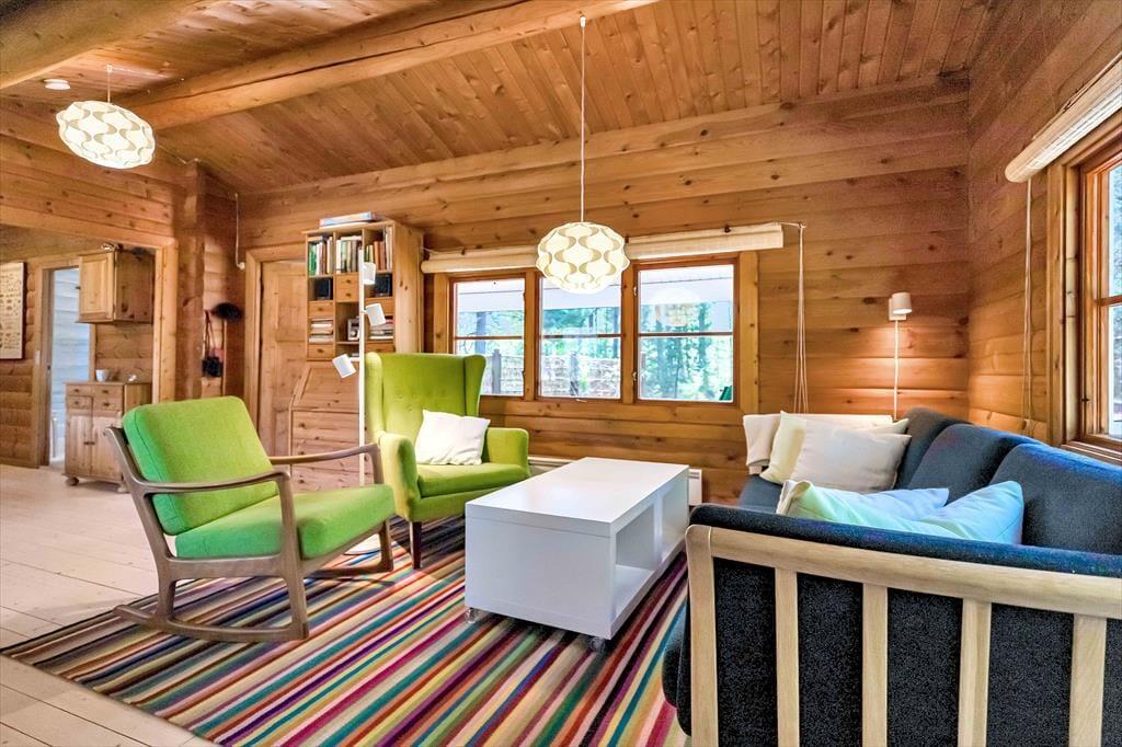 I sommerhuset, vil du med det samme få følelsen af at være velkommen, alt fremstår lyst og særdeles indbydende. Du vil hurtigt få skuldrene ned og mærke, at det endelig er tid til ferie. I den dejlige stue, der er placeret i forbindelse med det åbne køkken, kan I samles omkring spisebordet til et brætspil eller en god frokost. Fra terrassen kan du opleve den fantastiske natur og være heldig at se et rådyr gå forbi.