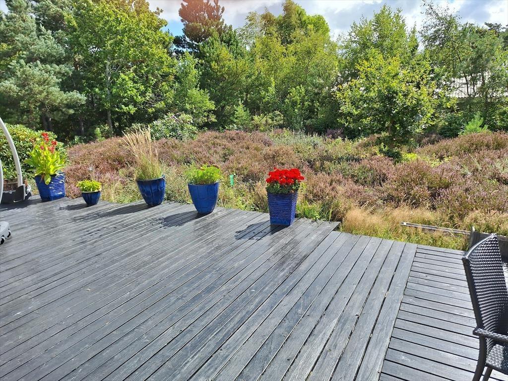 Efter en skøn dag på stranden kan du vælge at slappe af på terrassen og bare nyde solen samtidig med at du fordyber dig i en god bog. Husk også at benytte husets udebruser, hvor du kan skylle dig af under åben himmel. Naturgrunden kan ikke beskrives, den skal opleves, den smukke lyng og den hyggelige beplantning vil du helt sikkert sætte pris på. Når det er blevet tid til at nyde aftensmaden, så er det helt perfekt at sidde ved bordet på den superhyggelige overdækkede del af terrassen, hvor I også kan benytte jer af grill og udekøkkenet.