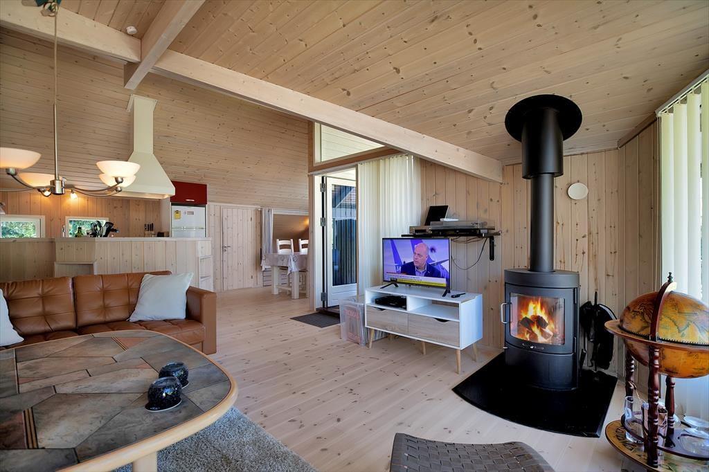 Sommerhuset er indrettet med dejlig stue, her kan du fordybe dig i en god bog eller hvad med et slag kort og en latte. I forbindelse med stuen er der et åbent køkken hvor I kan hjælpes om at tilberede frokosten samt alkove med plads til to personer. Der er et fint badeværelse med brus og to skønne soveværelser, det ene med dobbeltseng, det andet med to enkeltsenge. End videre er der adgang til en særdeles hyggelig udestue. Terrassen er opdelt i en overdækket og en åben afdeling, her kan der både grilles og du kan nyde solen fra morgen til aften, mens børnene leger i haven. Alt i huset fremstår lyst og meget indbydende.