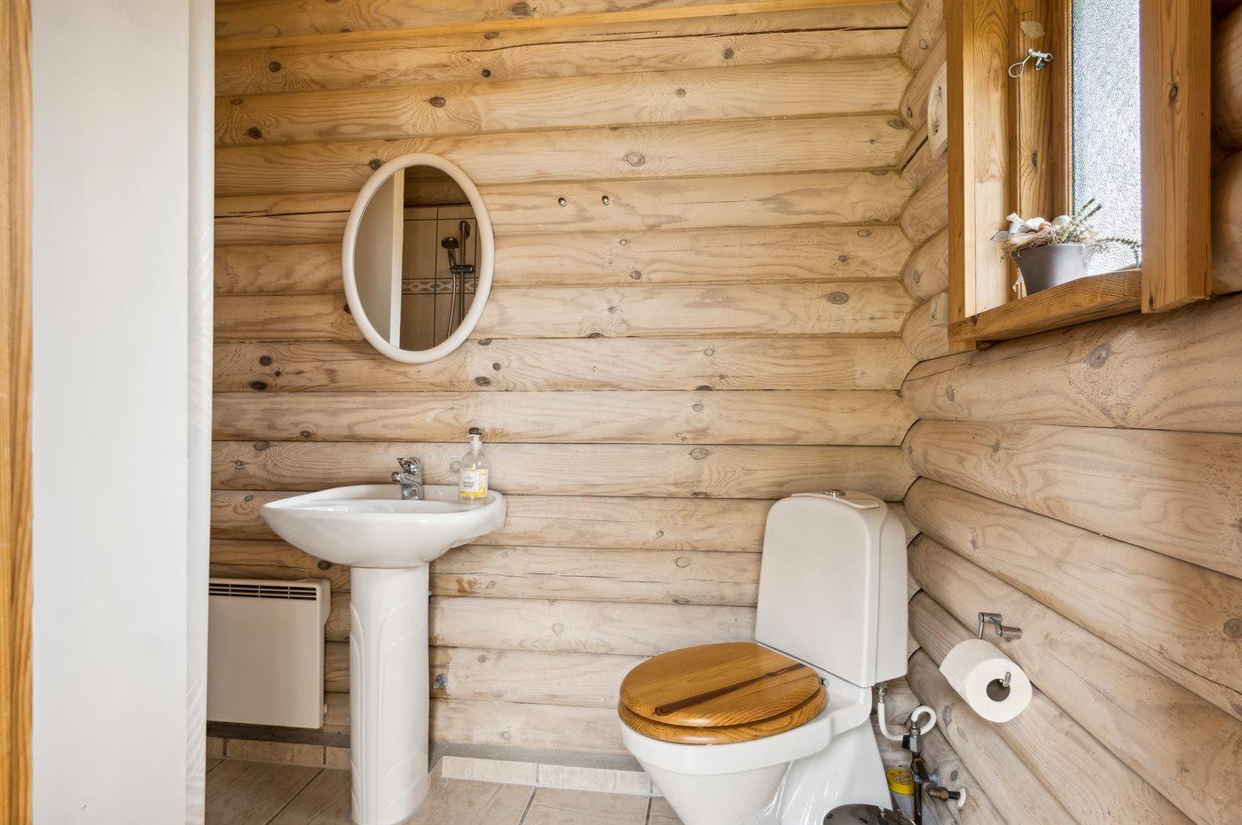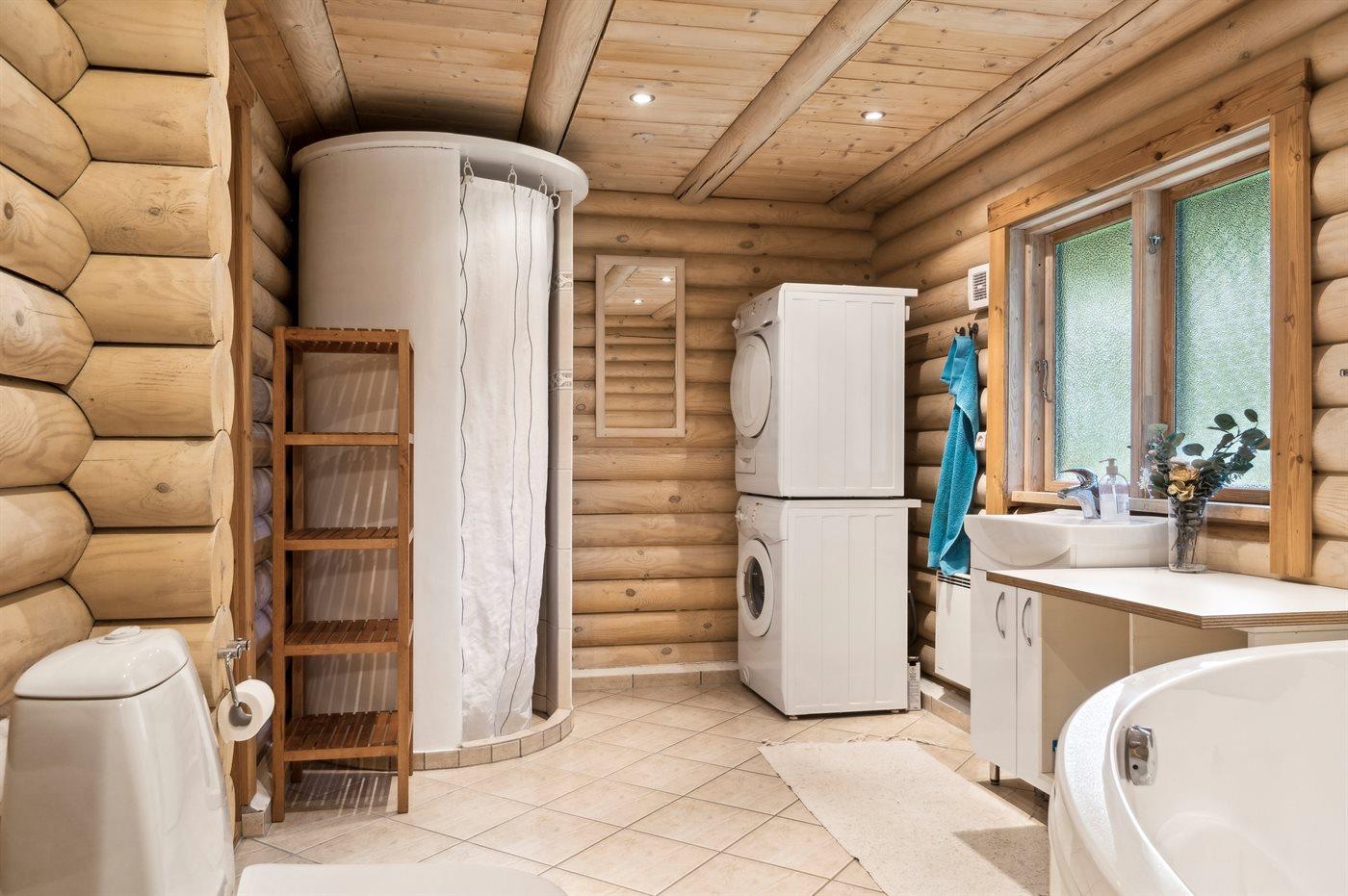 Der er 2 badeværelser med bruseniche og 2 toiletter. Der er gulvvarme på 2 badeværelser. I saunaen er der mulighed for afslapning.