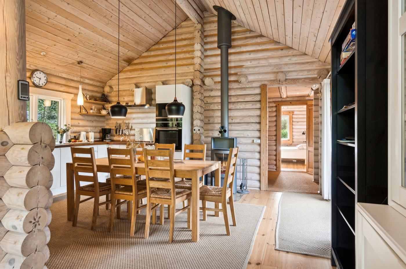 Huset opvarmes energivenligt med luft-til-luft varmepumpe, og der er desuden brændeovn.