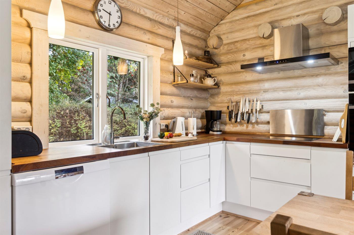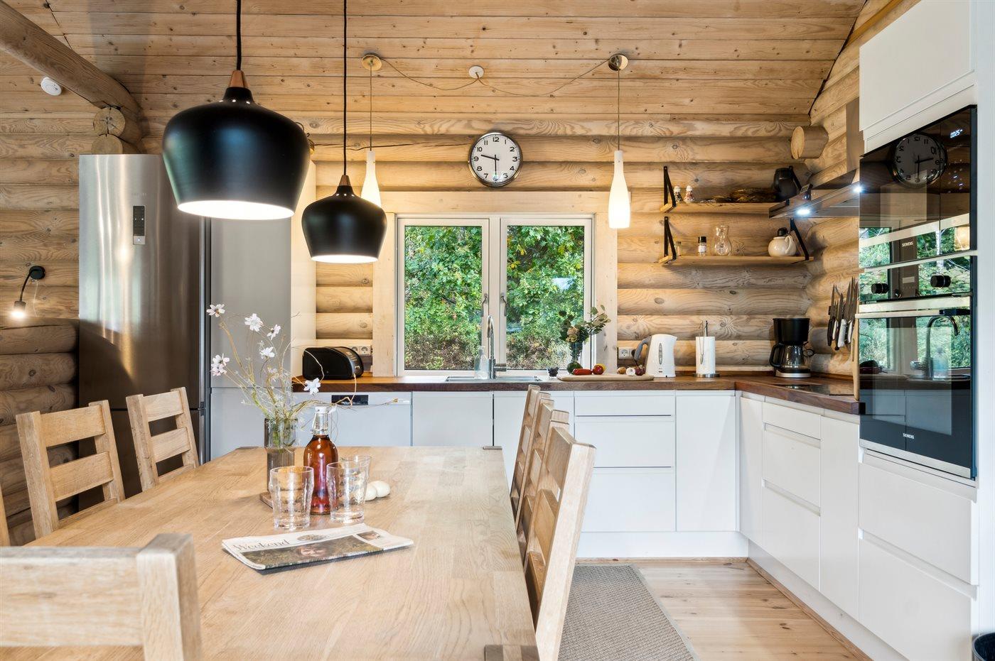 Køkkenet er udstyret med 1 køleskab. Der er 4 induktionskogeplader, varmluftovn, mikrobølgeovn samt opvaskemaskine.