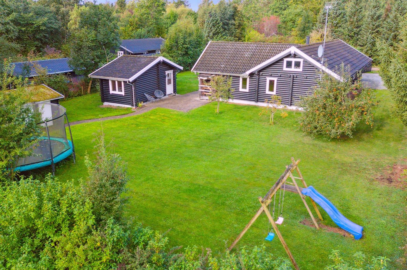Ferieboligen er beliggende på en 1518 m² stor havegrund. Der er 2000 m til havet. Nærmeste forretning er beliggende i en afstand af 3600 m. Der er en golfbane i en afstand af 3000 m. Til ferieboligen hører 50 m² terrasseareal. Desuden er der 25 m² overdækket terrasse. Gynge. Legehus. Trampolin. Rutchebane. Grill til rådighed. Der er installeret stik til opladning af elbil. Type 2 stik. Med 11 kW ladeeffekt. Parkering ved ferieboligen.