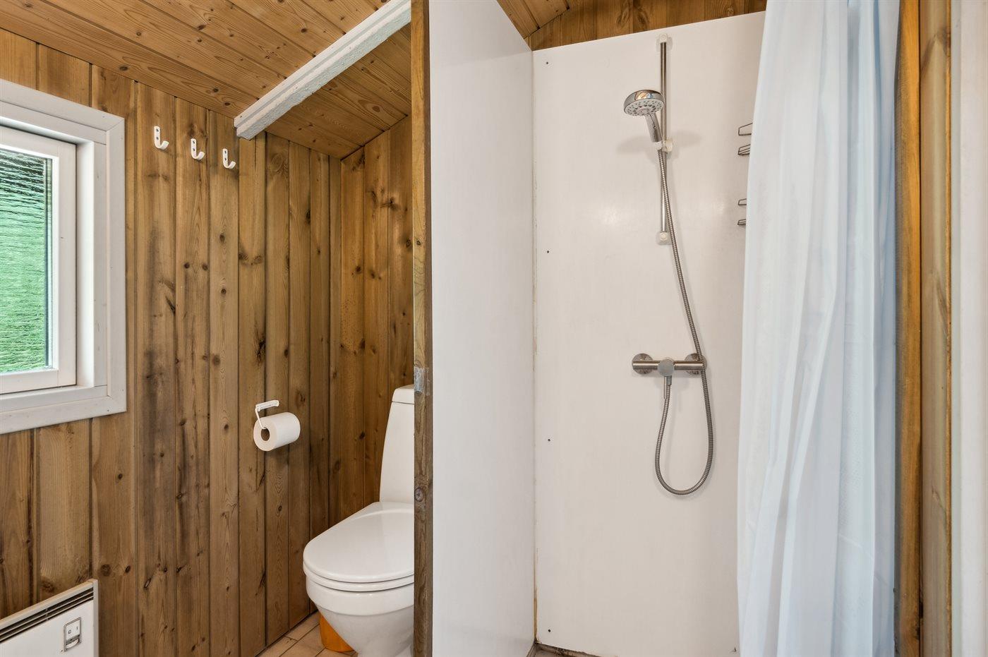 Der er 1 badeværelse med bruseniche og 1 toilet.