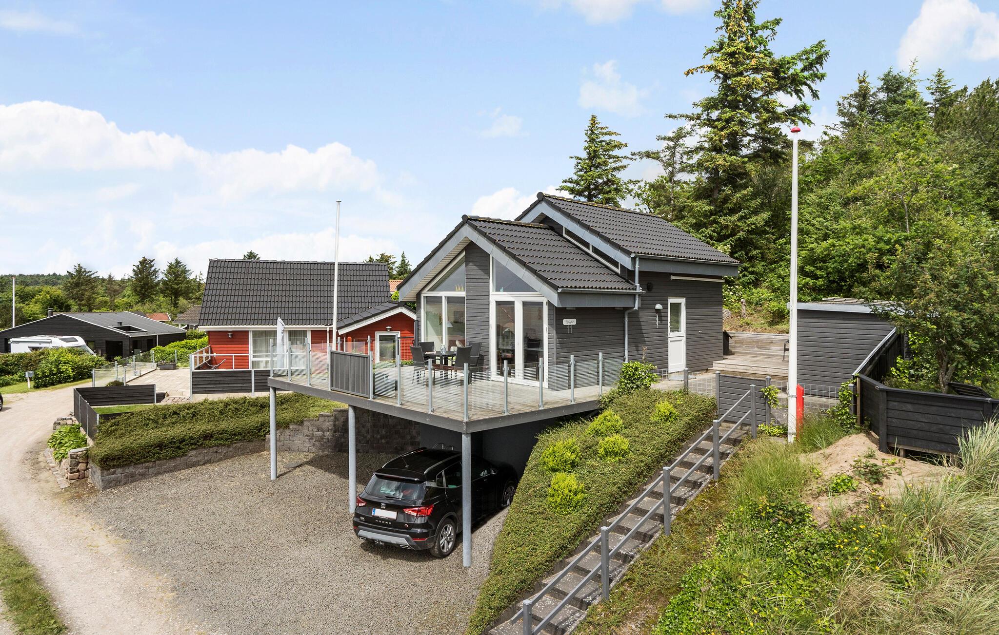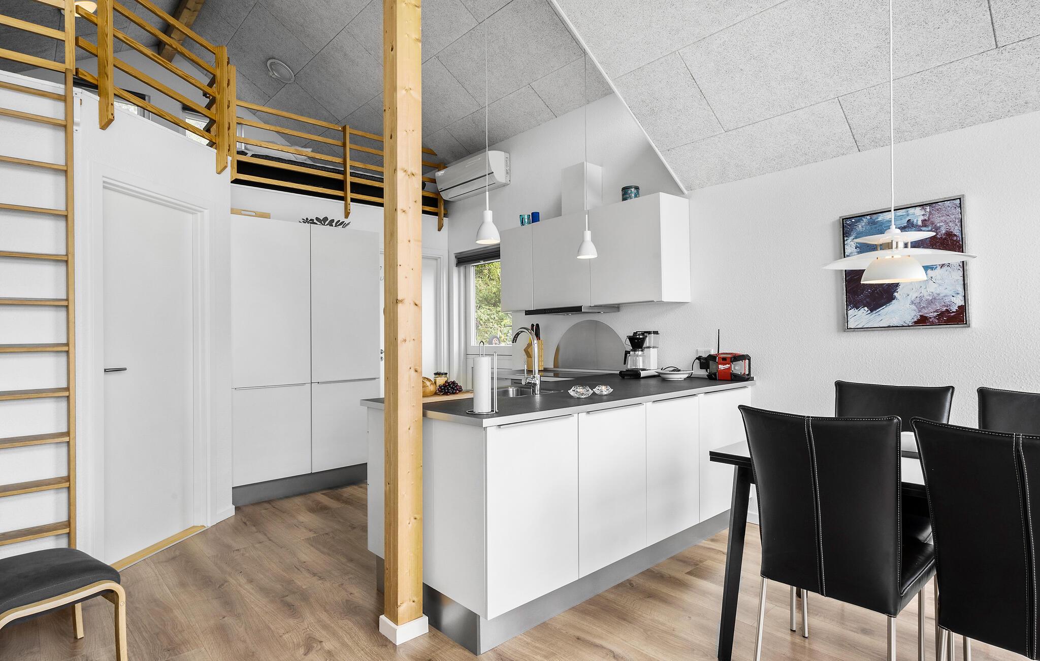 Glæd jer til en afslappende og romantisk ferie i dette skønne sommerhus. Den lyse og hyggelige indretning får jer straks i feriestemning. De store vinduespartier lukker en masse naturlig lys ind, og ikke mindst den smukke havudsigt. Udsigten kan nydes stortset fra alle husets hjørner, uanset om I laver mad, spiller spil ved spisebordet eller ser en god film i sofaen.