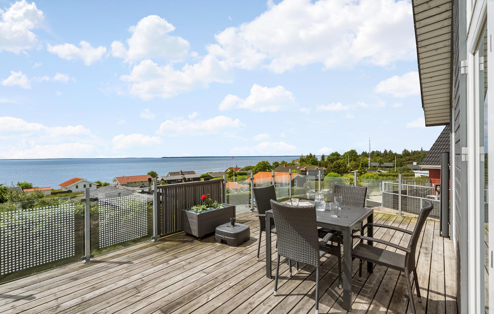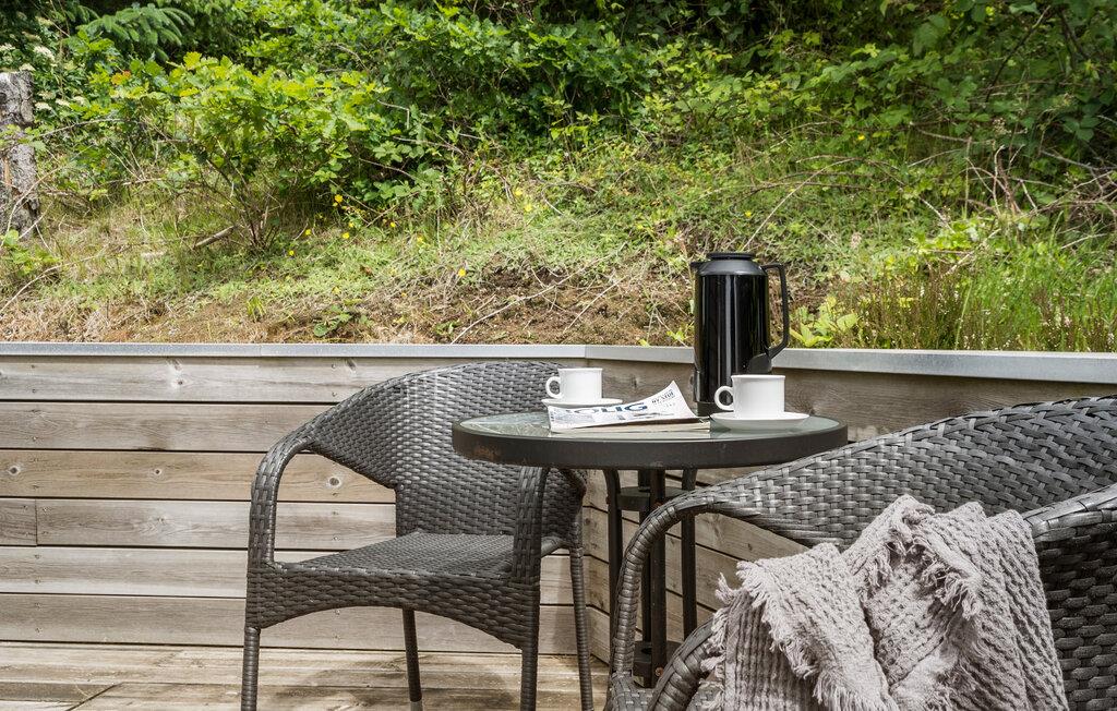 Ligeledes kan udsigten nydes fra træterrassen. Tag morgenkaffen med ud og nyd havet, den friske luft og det smukke natur.