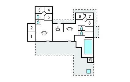 Glæd jer til dette hus med en stilfuld atmosfære, højt til loftet og store vinduer, hvor dagslyset falder blidt ind. Stuen byder på behagelige sofaer og varme farver, der indbyder til afslappede stunder, måske med musik eller en fælles filmaften. Der er projektor og lærred, så I kan nemt skabe biografstemning. Og hvis I bagefter får lyst til lidt aktivitet, kan I tage en svømmetur i indendørspoolen, spille en omgang billard eller bordfodbold og bagefter skåle for vinderen.