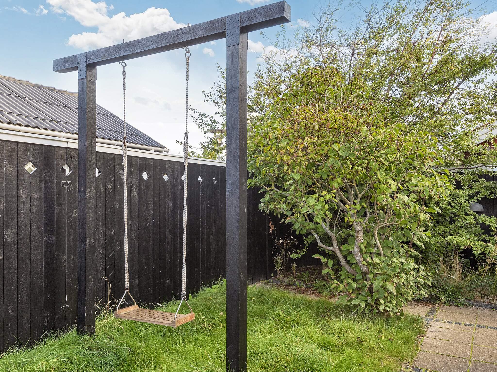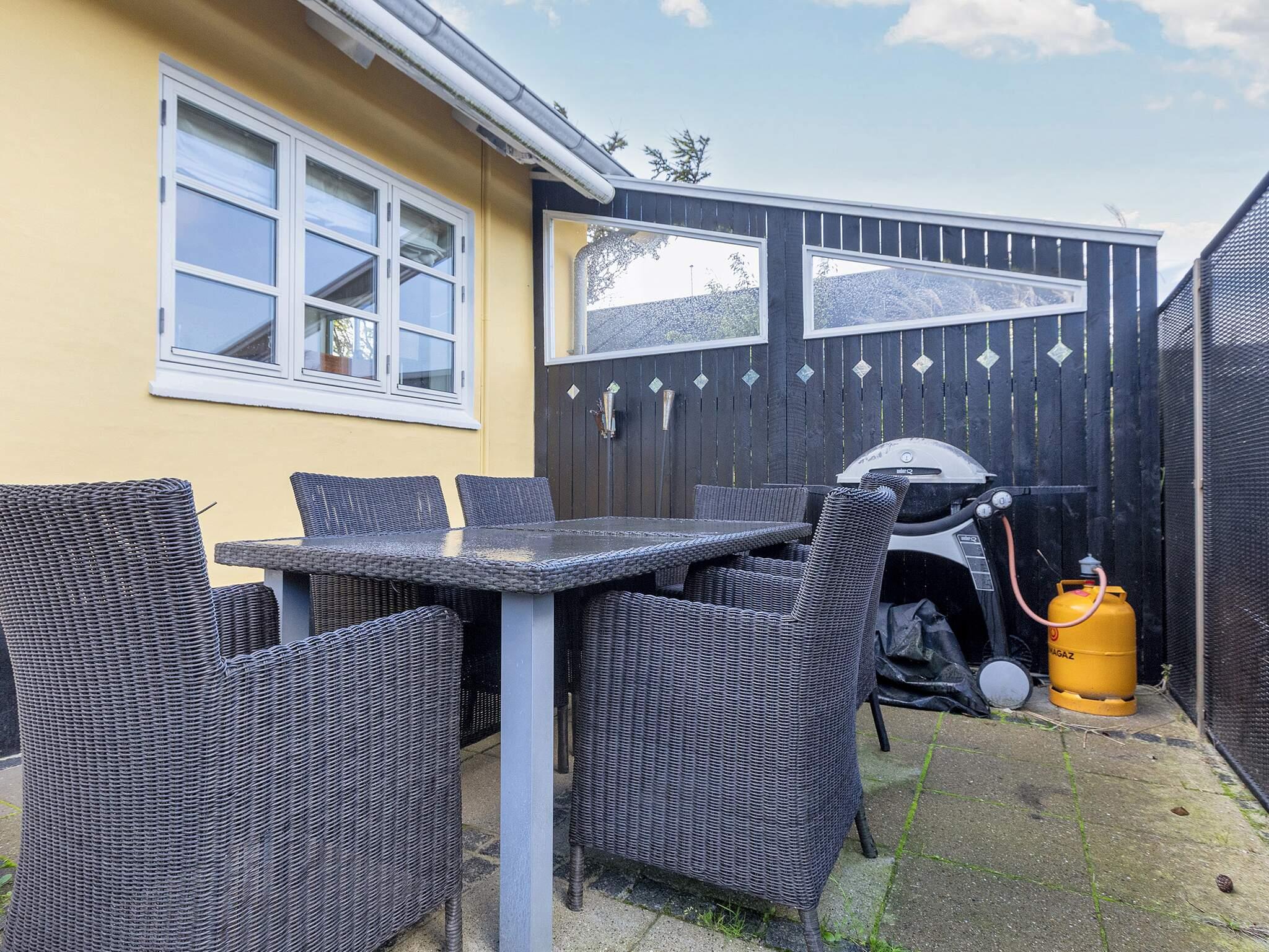 Fra stuen er der direkte udgang til en stor terrasse med tilhørende hyggelig have. Her er der rig mulighed for, at man kan slænge sig i én af husets solvogne eller nyde en hyggelig grillaften under markisen med et glas kolde bobler. For familiens yngste eller de større legebørn er der gynge, man lege på. Alt i alt indbyder husets udvendige til, at den danske sommer udleves til fulde. Der er desuden mulighed for, at man kan parkere ved huset, således man slipper for at slæbe baggagen særligt langt. Bemærk at vand er inkl. i lejen, og at huset ikke udlejes til ungdomsgrupper.
