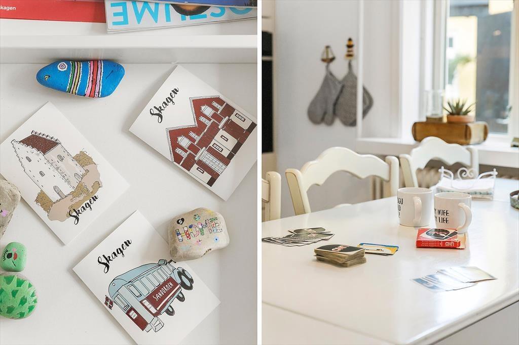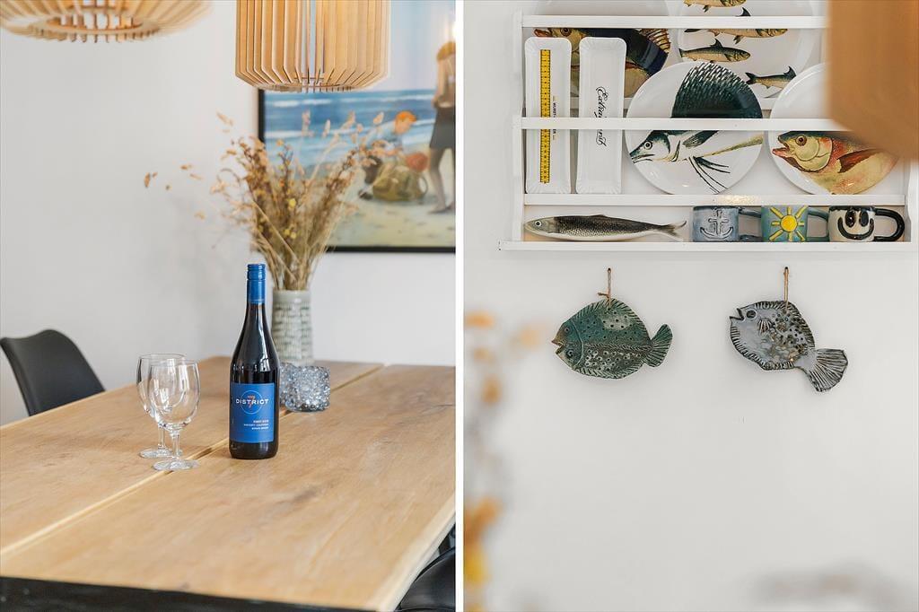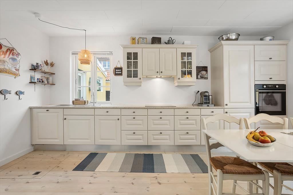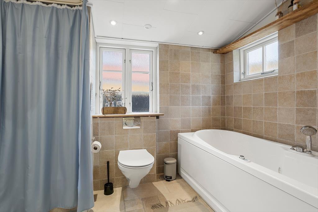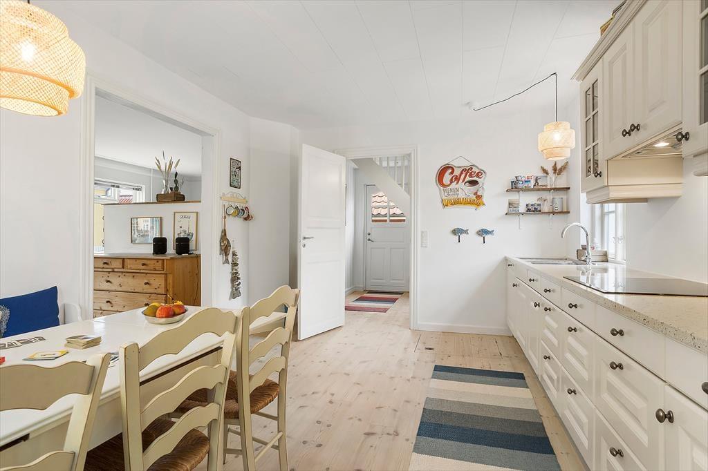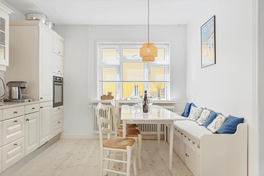 Indenfor mødes du af en lys og hyggelig indretning, der med det samme inviterer til afslapning og fællesskab. Sommerhuset har en venlig og hjemlig atmosfære, og det er let at forestille sig lange, dovne morgener rundt om spisebordet og stille aftener med spil, grin og samtaler i sofaen. I køkkenet er ligeledes et stort bord placeret, så det er nemt at være sammen, mens maden tilberedes. Det store badeværelse byder på både god plads og et dejligt badekar, der indbyder til afslapning efter en lang dag i byen eller på stranden. I hovedhuset er der gode sovepladser til flere, og det charmerende anneks i gårdhaven har både dobbeltseng og eget toilet, hvilket gør det ideelt til bedsteforældre, teenagebørn eller det vennepar, der måske er med på ferie. Bemærk dog, at toilettet i annekset ikke kan benyttes i perioden fra 1. november til 1. april.